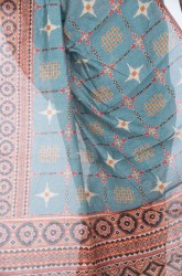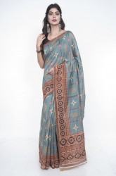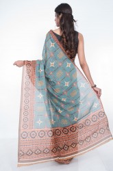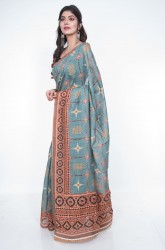Pallav: Greyish white pallav has multicolor digital flower prints.