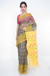 Body: Black body with all over worked jamdani buttas multicolor.
