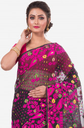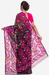 Black Pink Dhakai Jamdani Handwoven saree with jamdani style pallu.