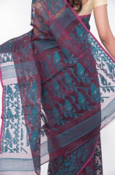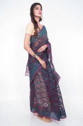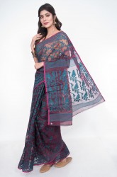 Pallav: Floral jaal vines in teal blue running all over the black pallav to give the saree an exquisite look.