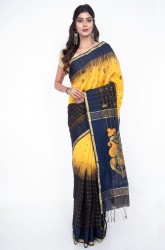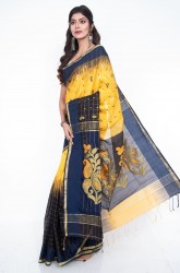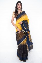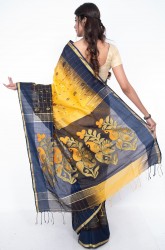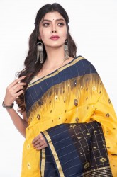 Border: Broad width skirt borders in black& golden checks at the bottom part and medium width black & golden stripe borders on the upper part creates the ultimate look of the saree.