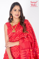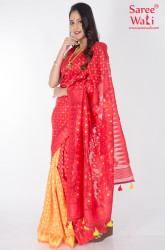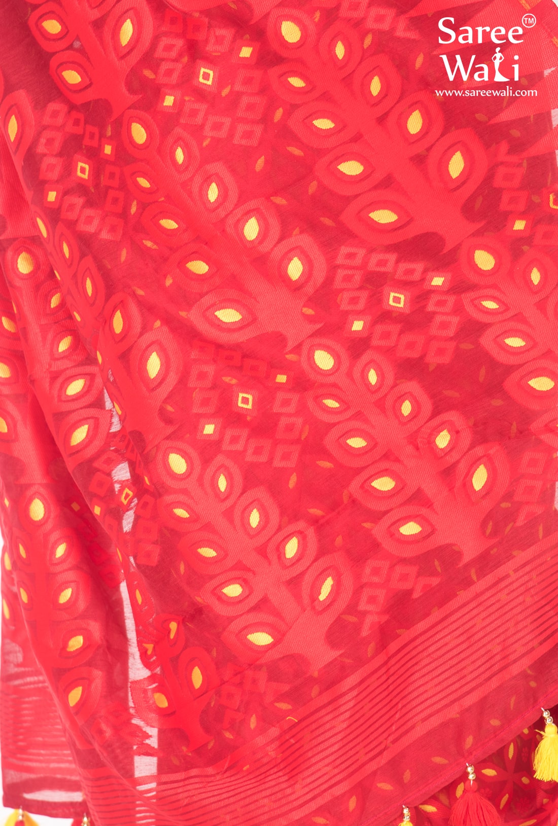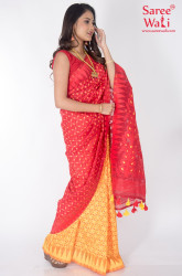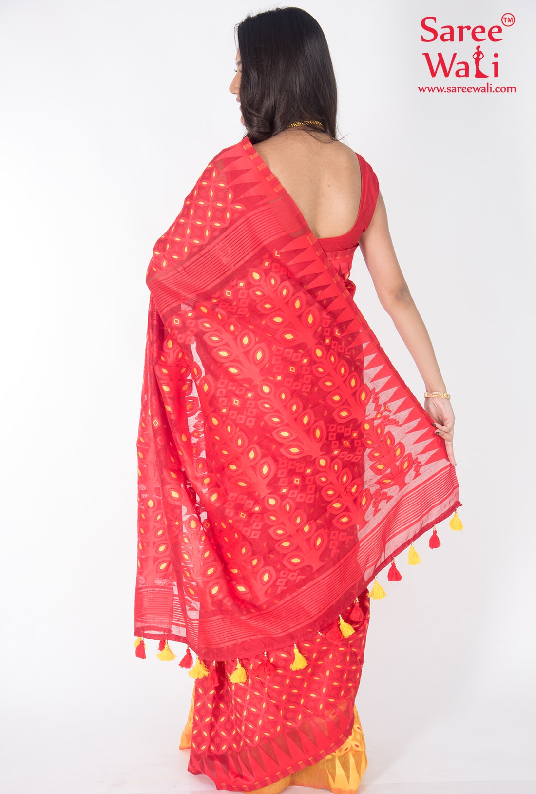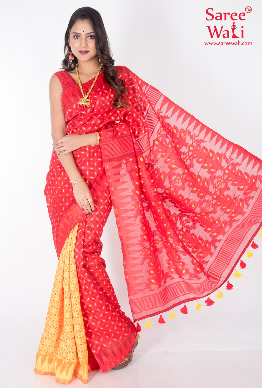 Red Yellow Cotton Work Dhakai Jamdani Saree SWHL0003
