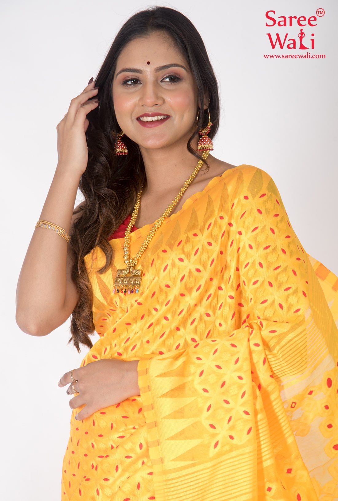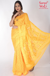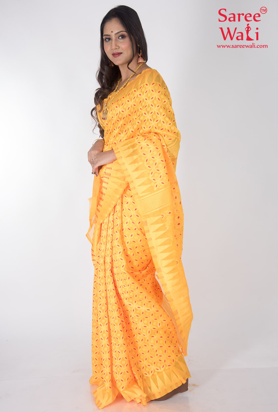 The saree measures 5.5 meters in length and 1.2 meters in width.