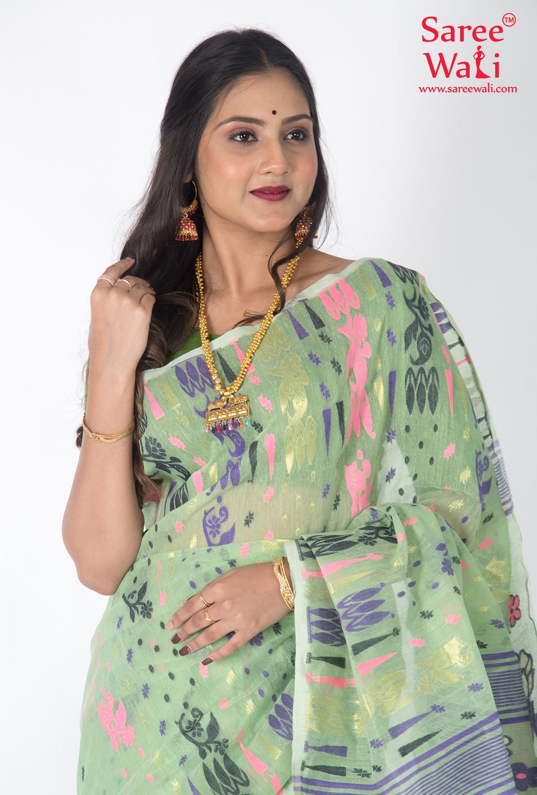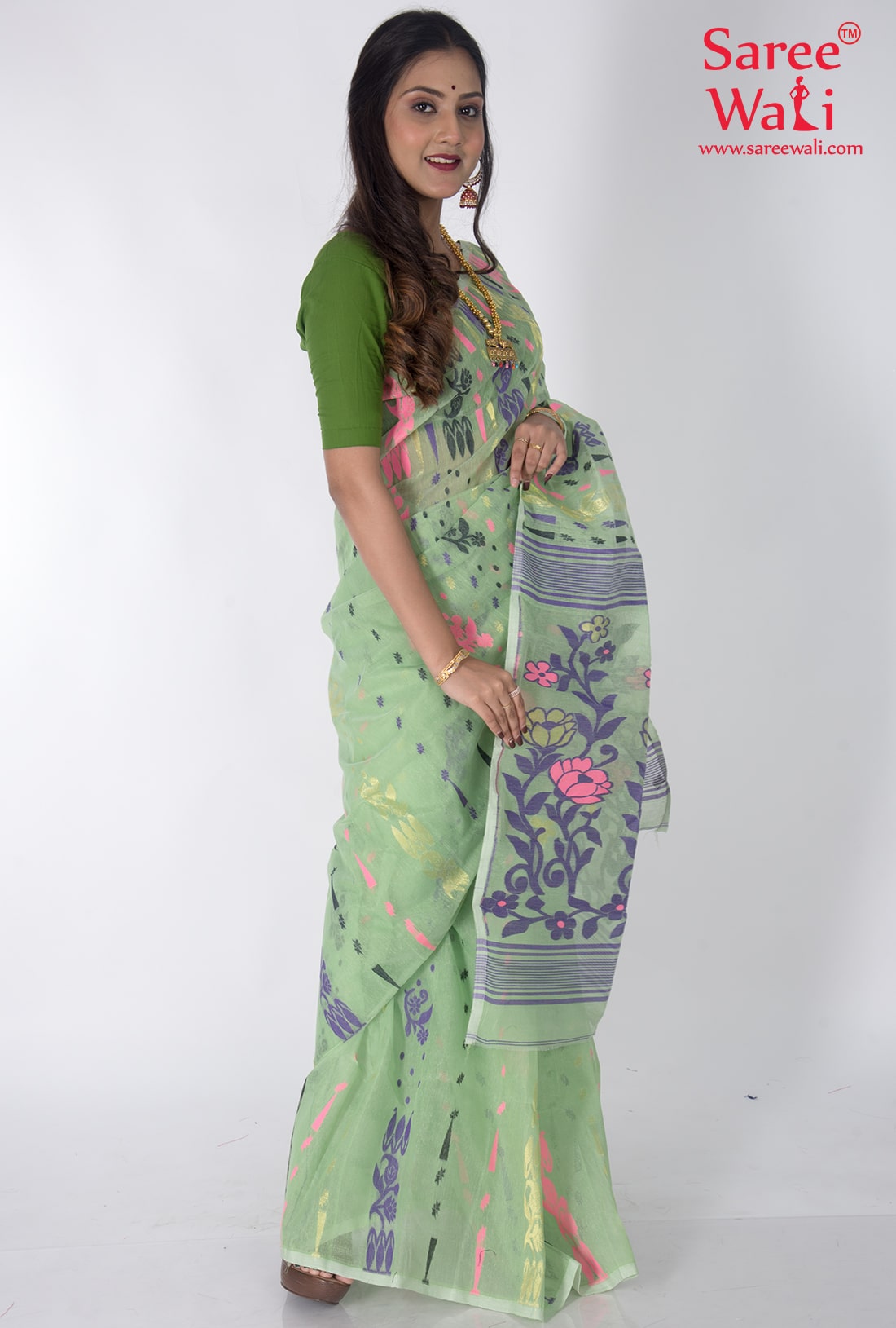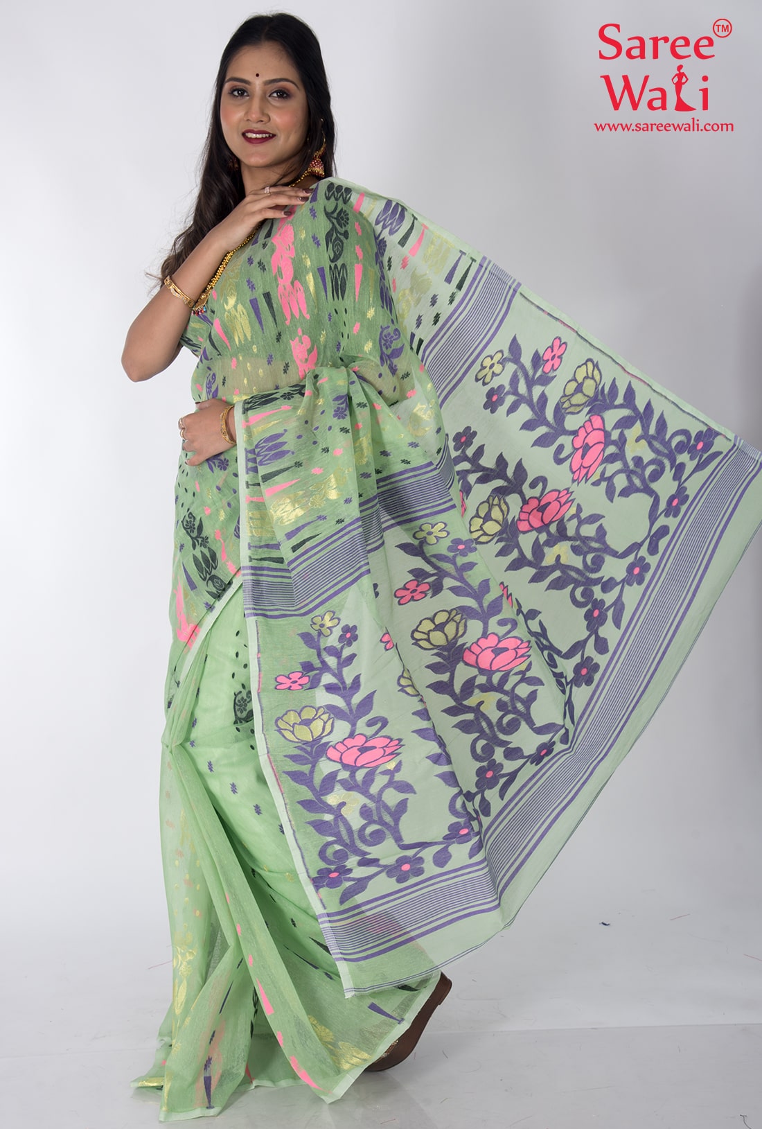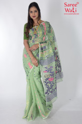 Green Cotton Work Dhakai Jamdani Saree SWHL0018