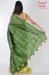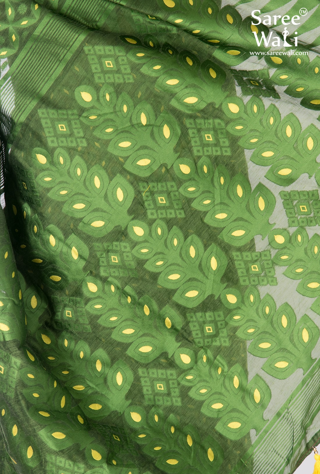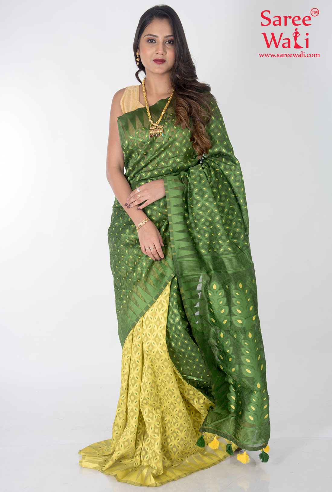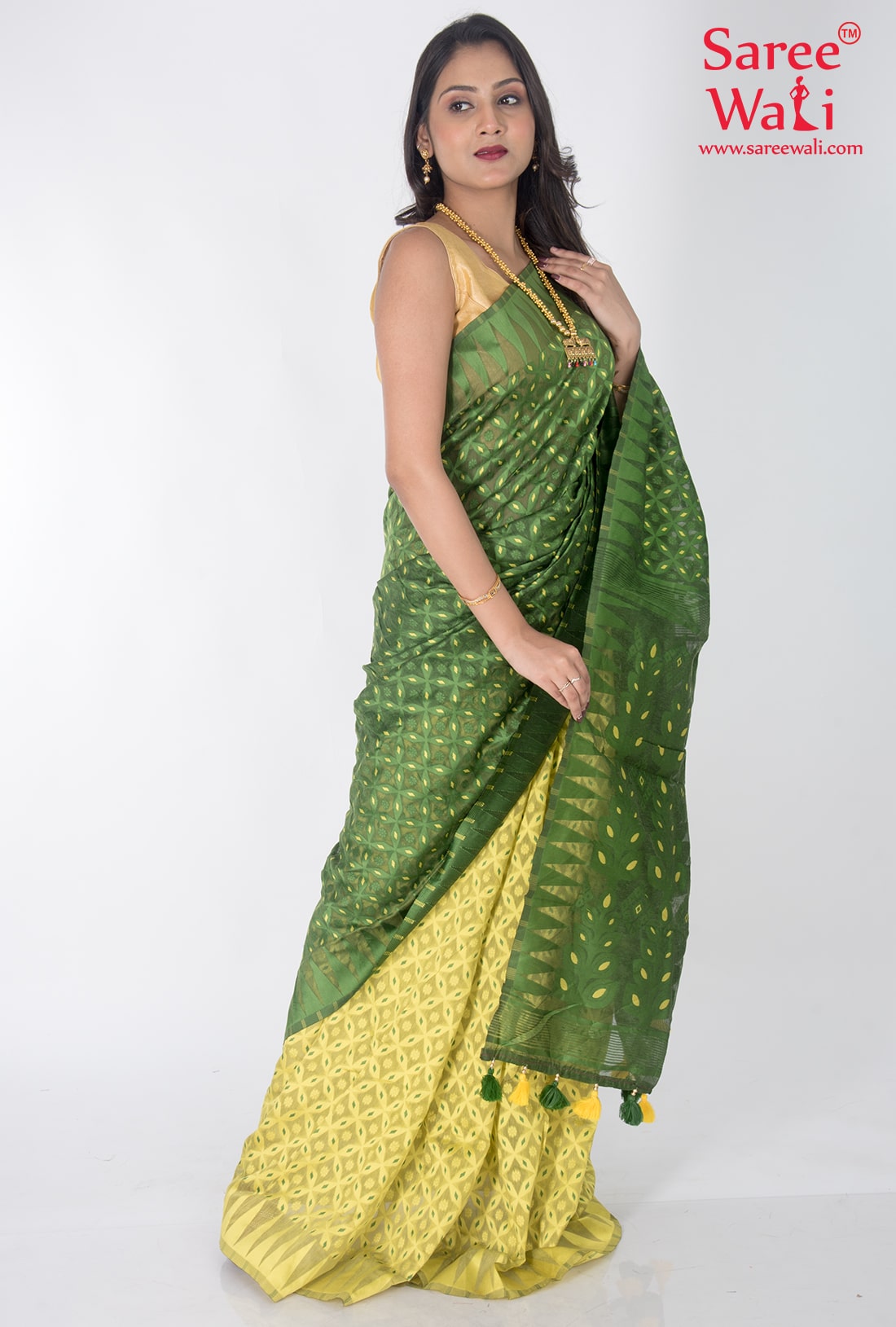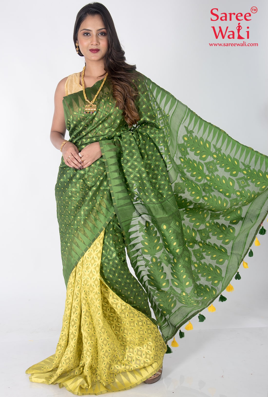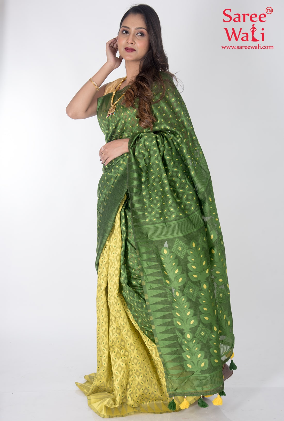 Green Yellow Cotton Work Dhakai Jamdani Saree SWHL0032