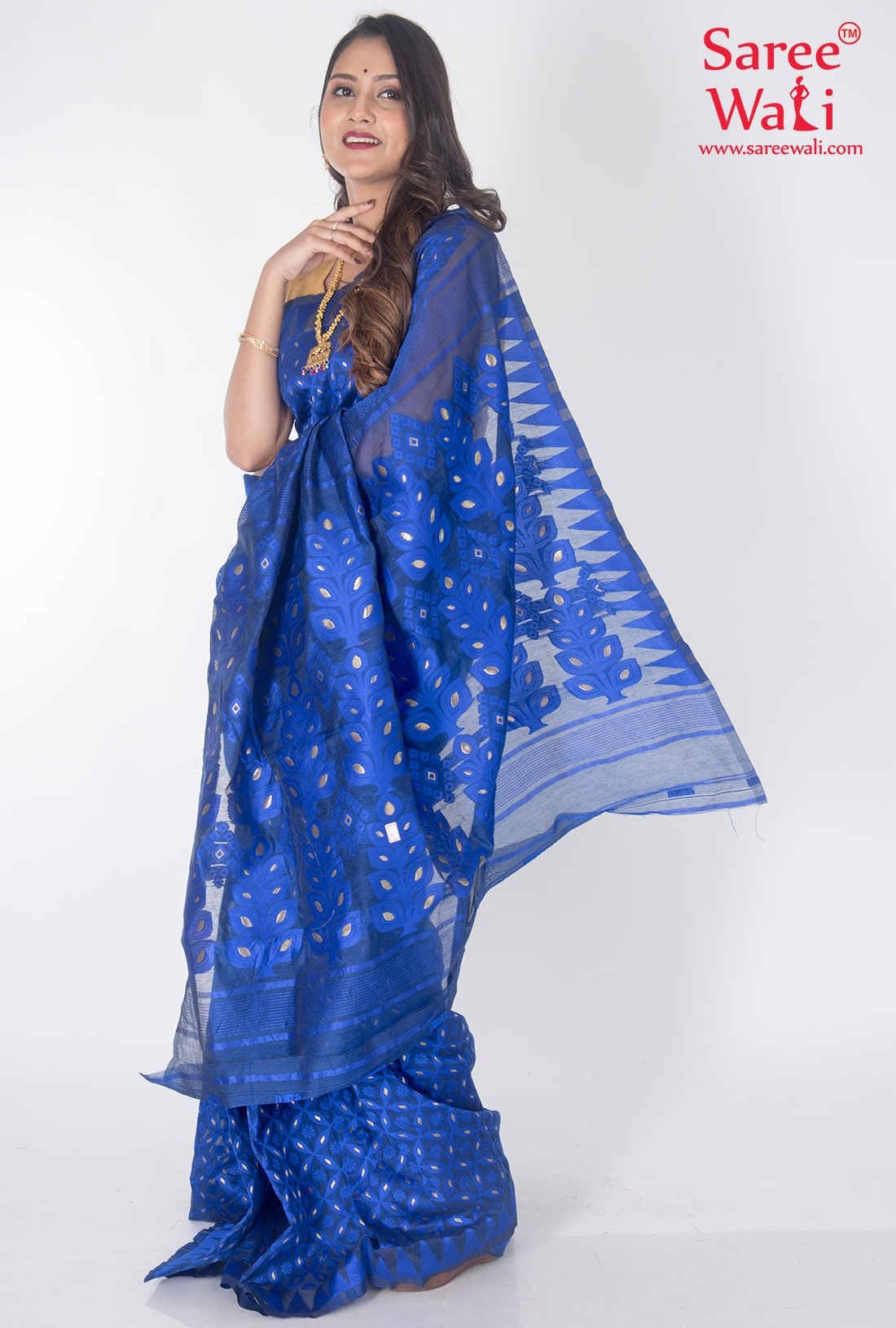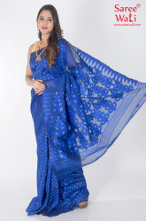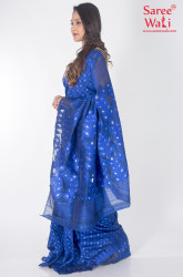 Blue Cotton Work Dhakai Jamdani Saree SWHL0039
