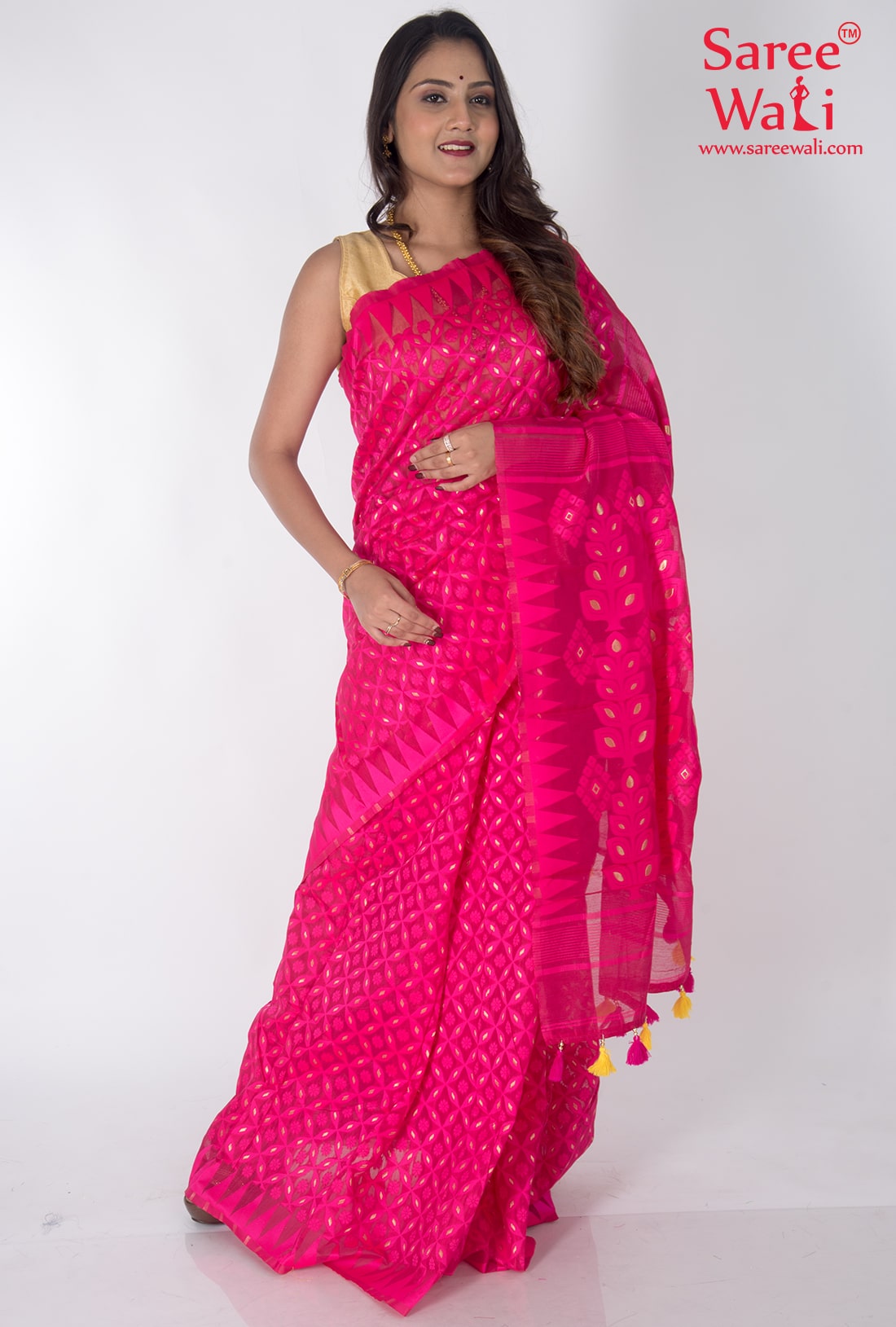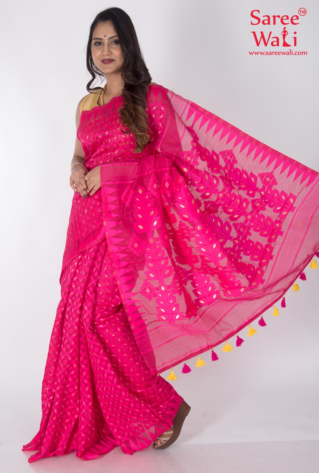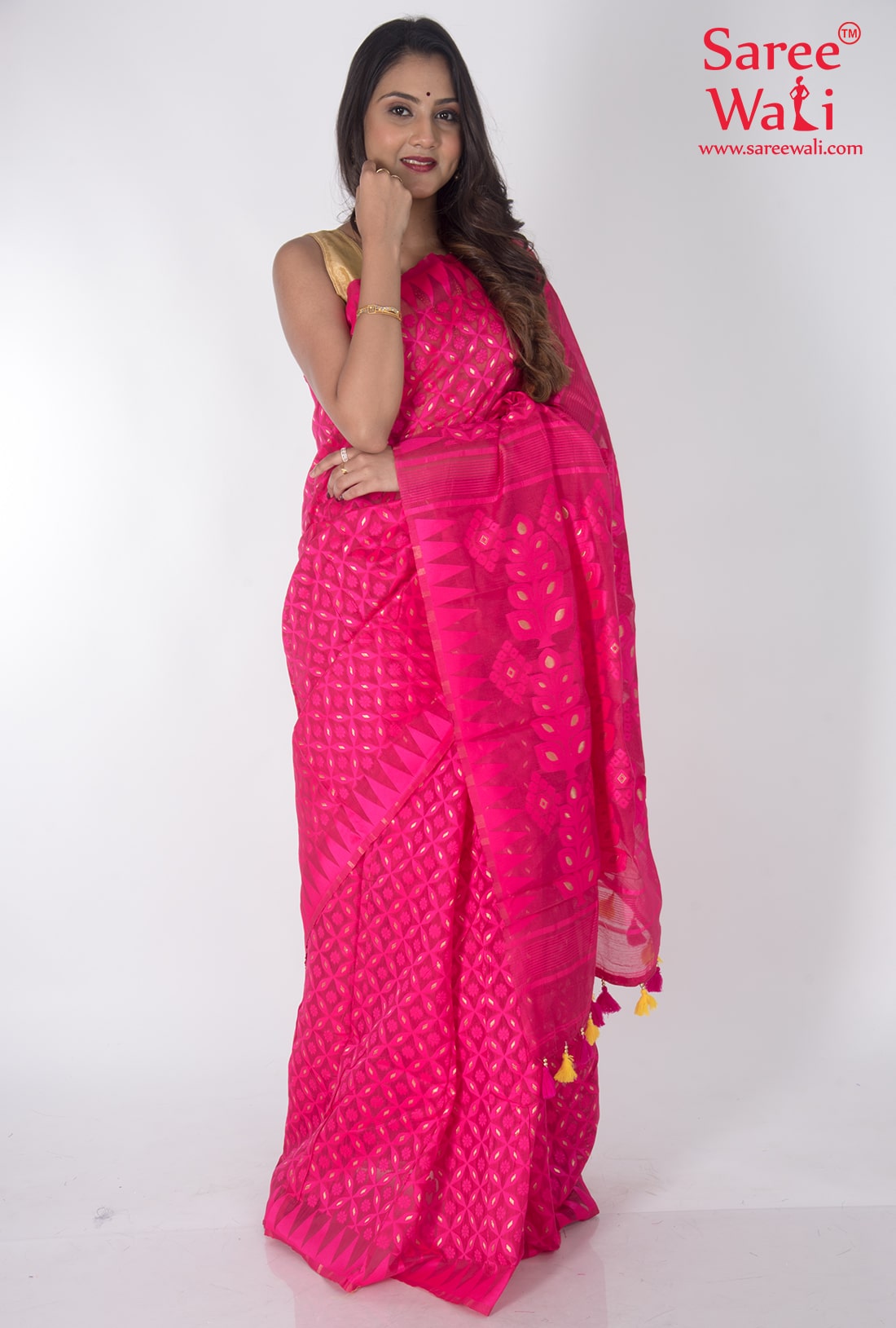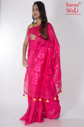 Pink Cotton Work Dhakai Jamdani Saree SWHL0041