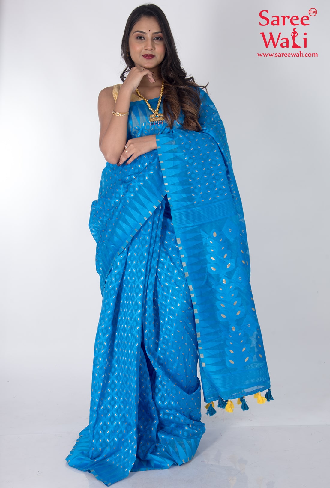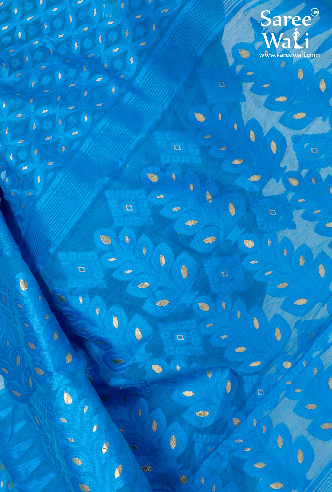 Blue Cotton Work Dhakai Jamdani Saree SWHL0043