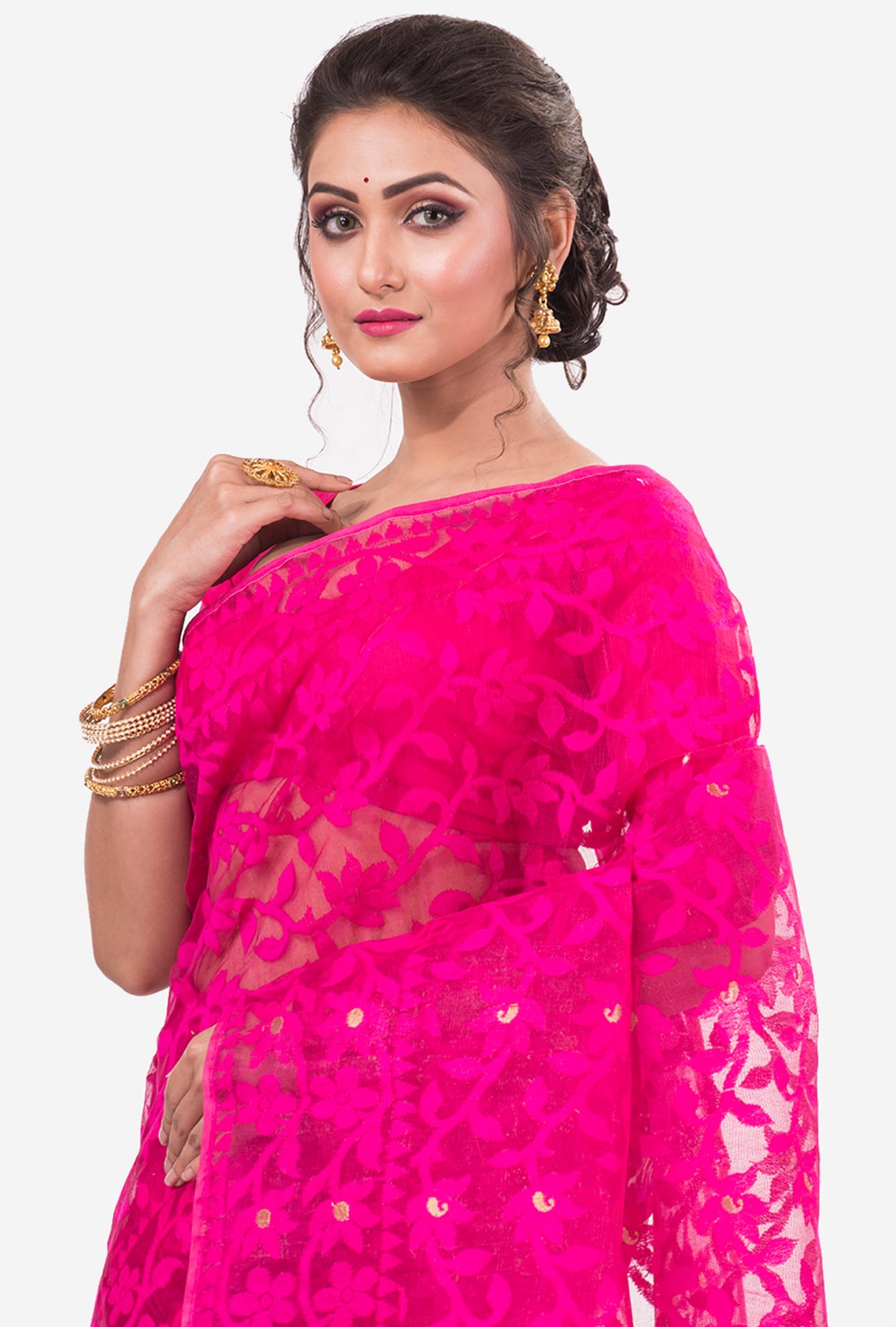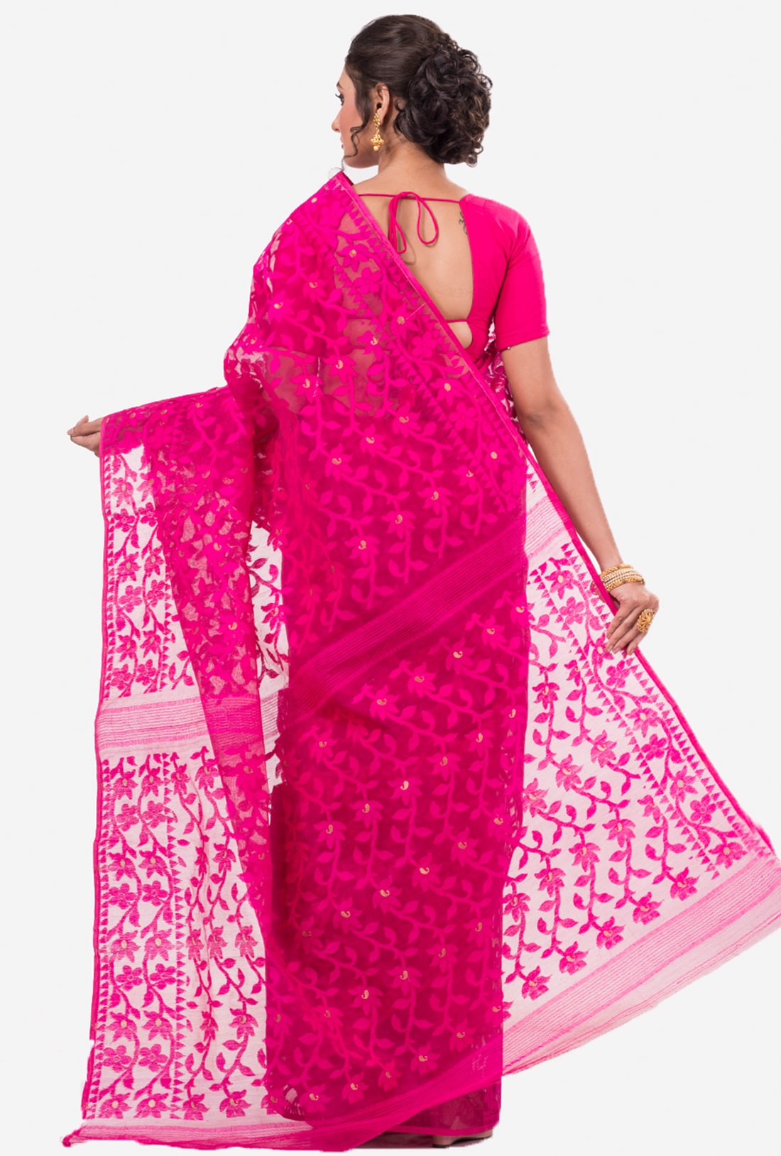 Fuchsia Pink Dhakai Jamdani Saree HTDS0037