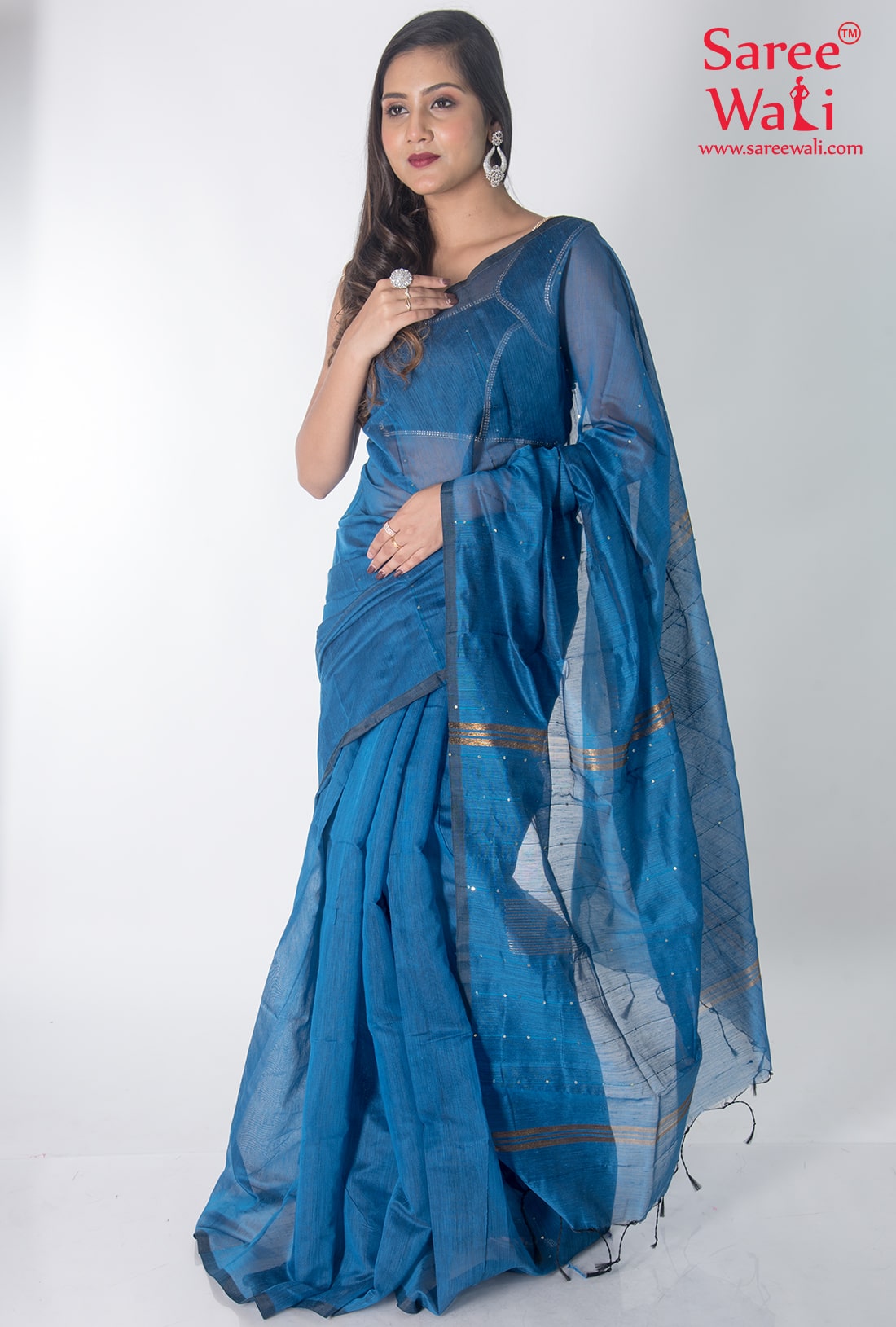 The saree measures 5.5 meters in length and 1.2 meters in width.