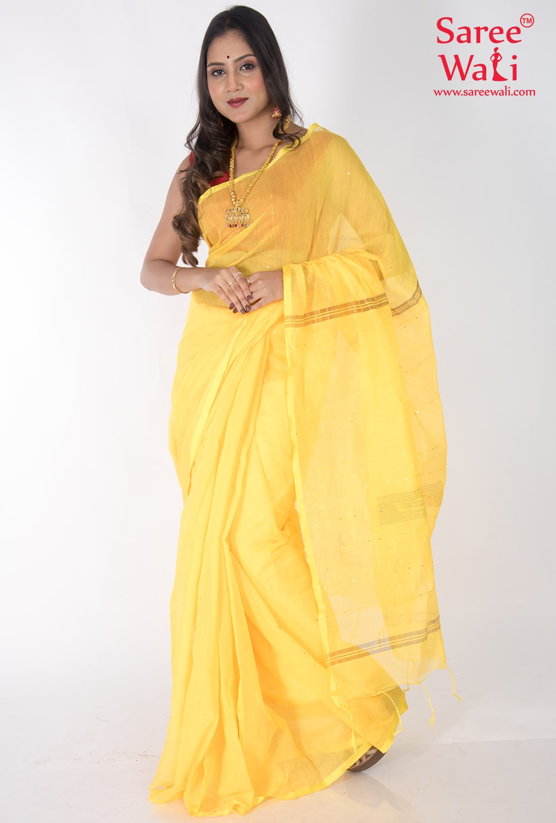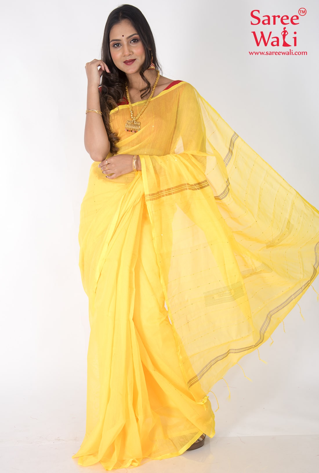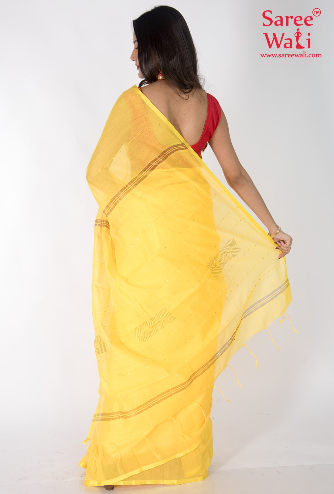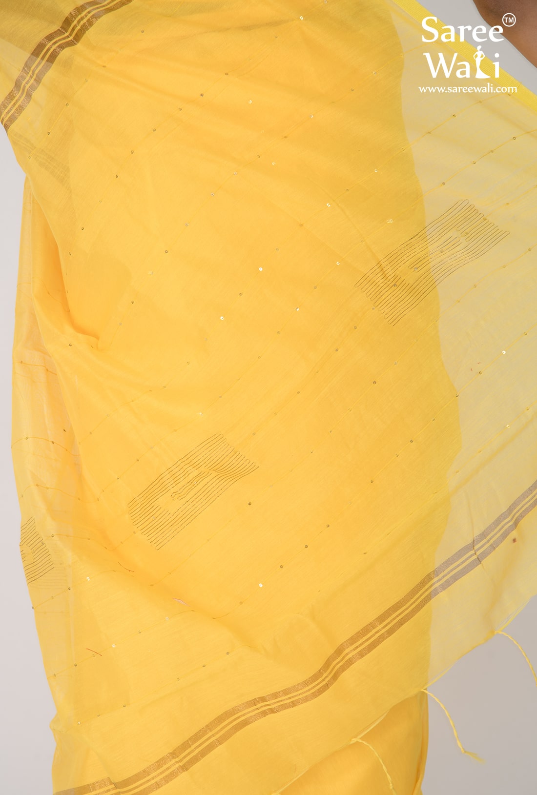 Yellow Handloom Saree in Sequin Zari Work SWHL0007