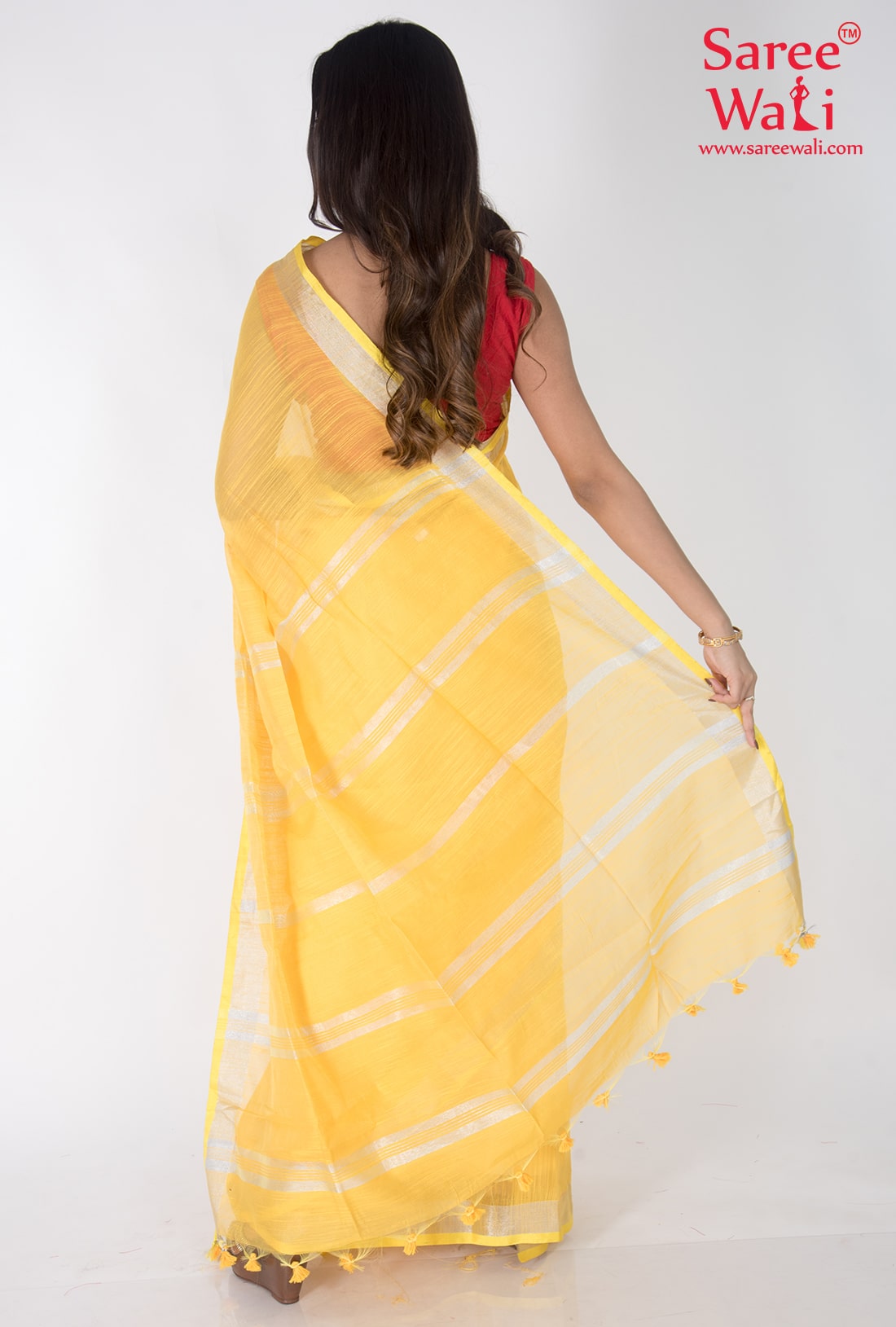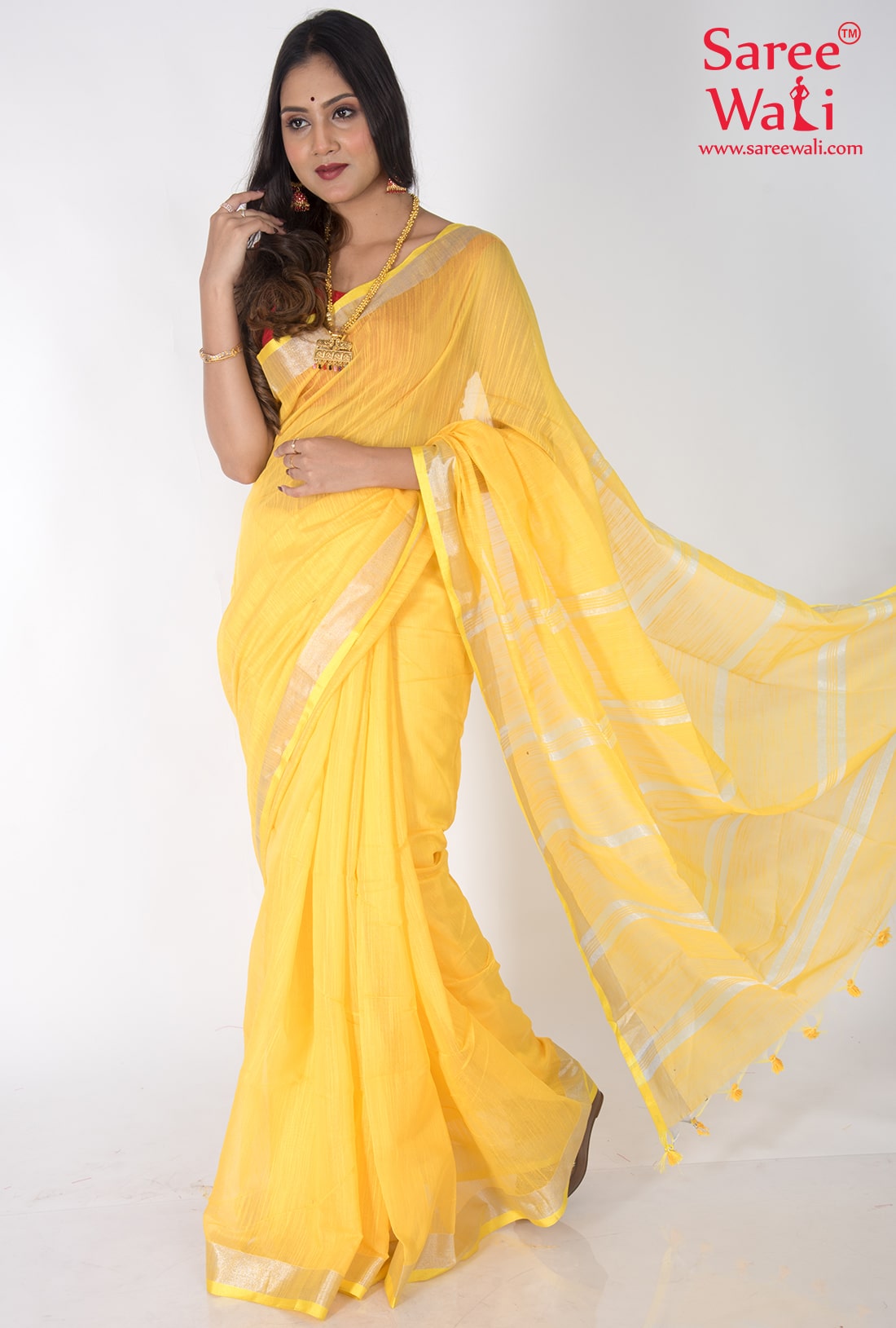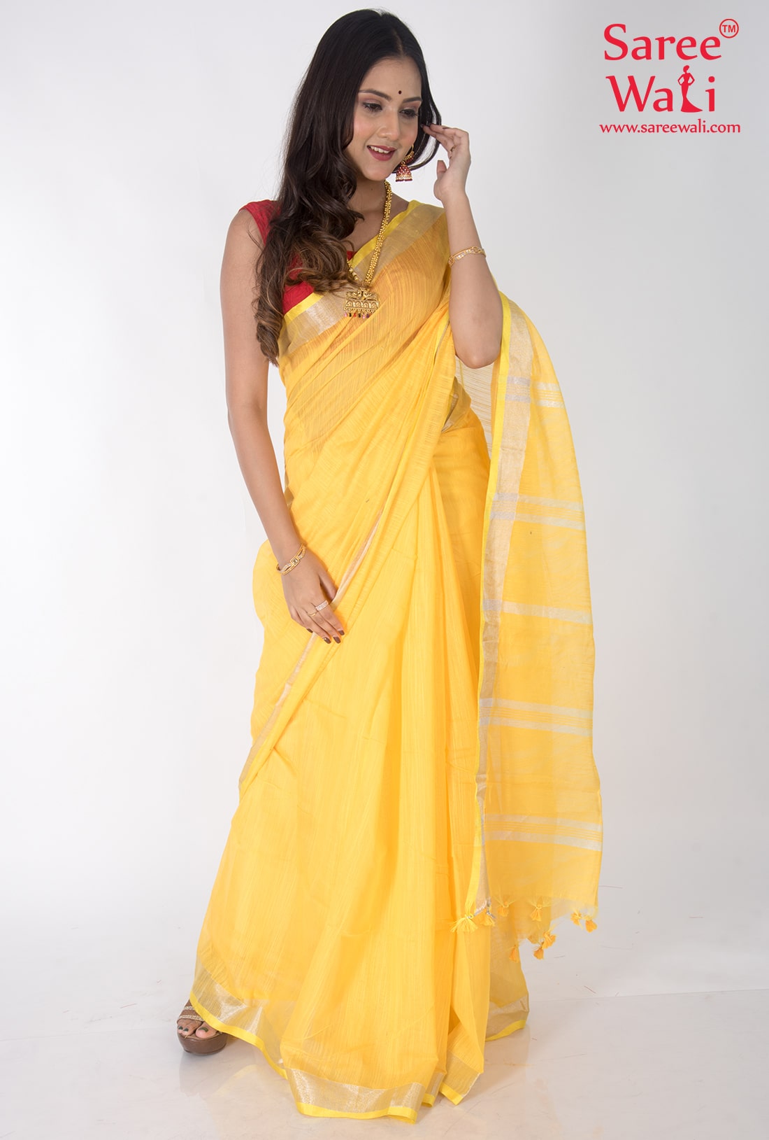 Art silk and cotton fabric of finest quality are used in the making of this Blod Plain Saree.