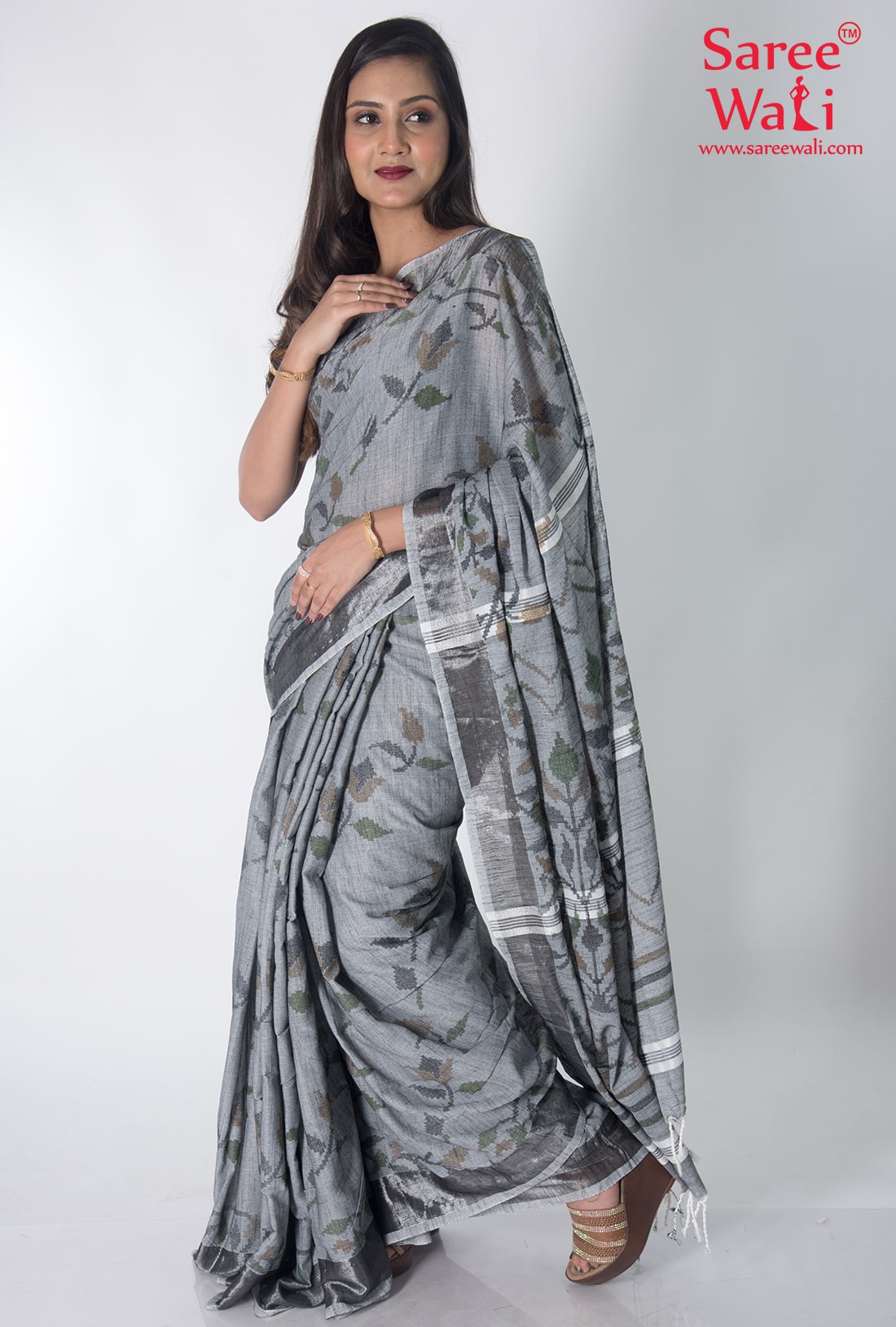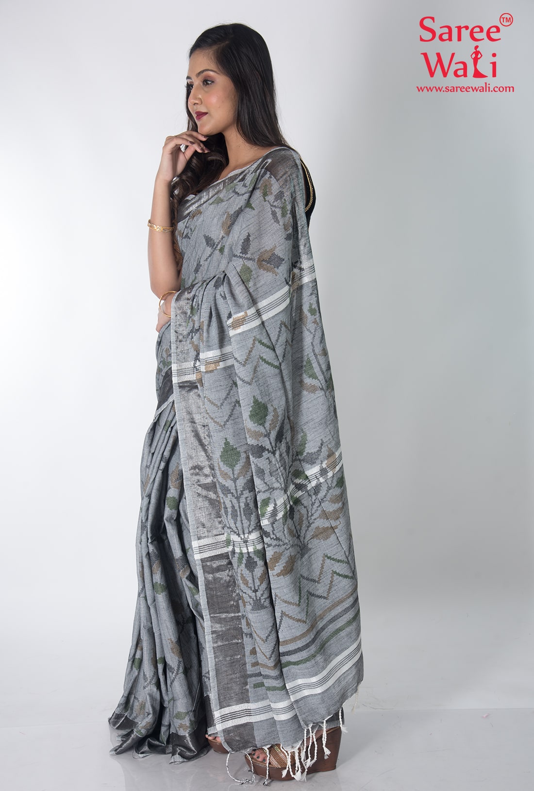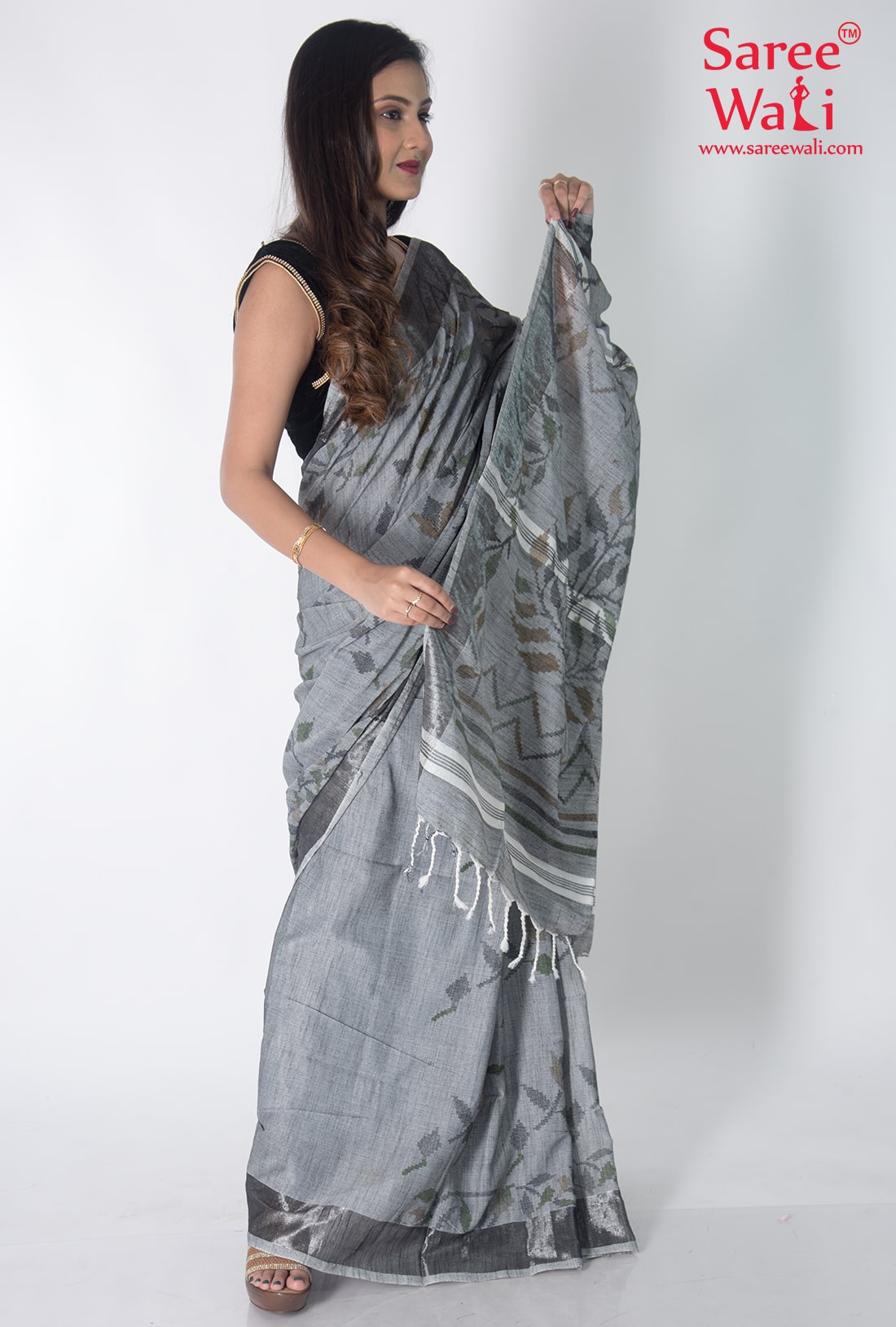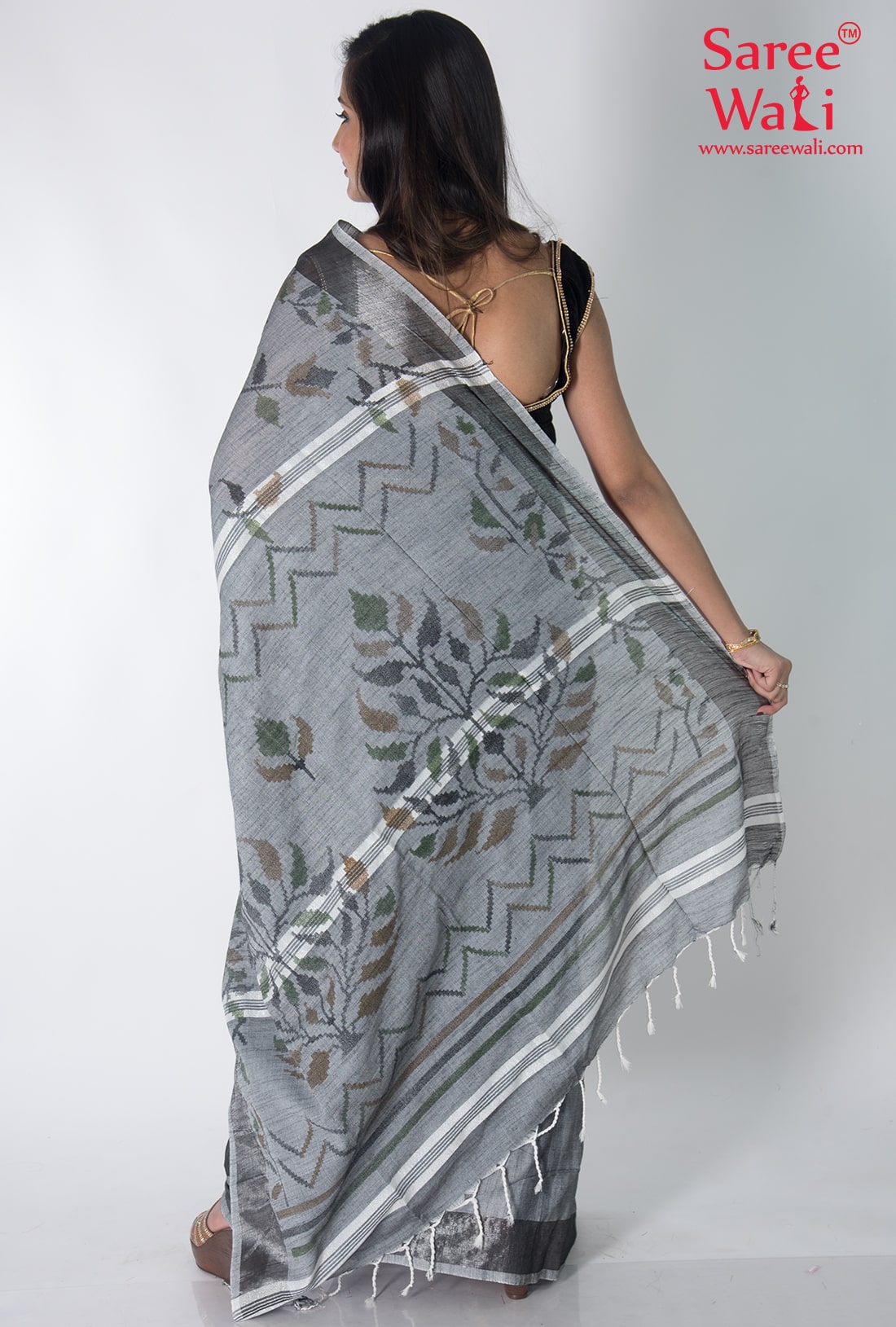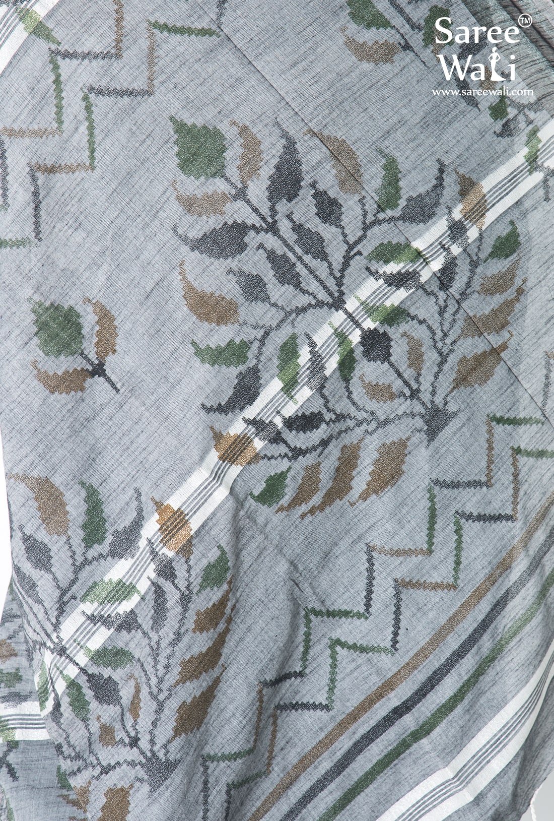 Grey Cotton Print Handloom Saree SWHL0024