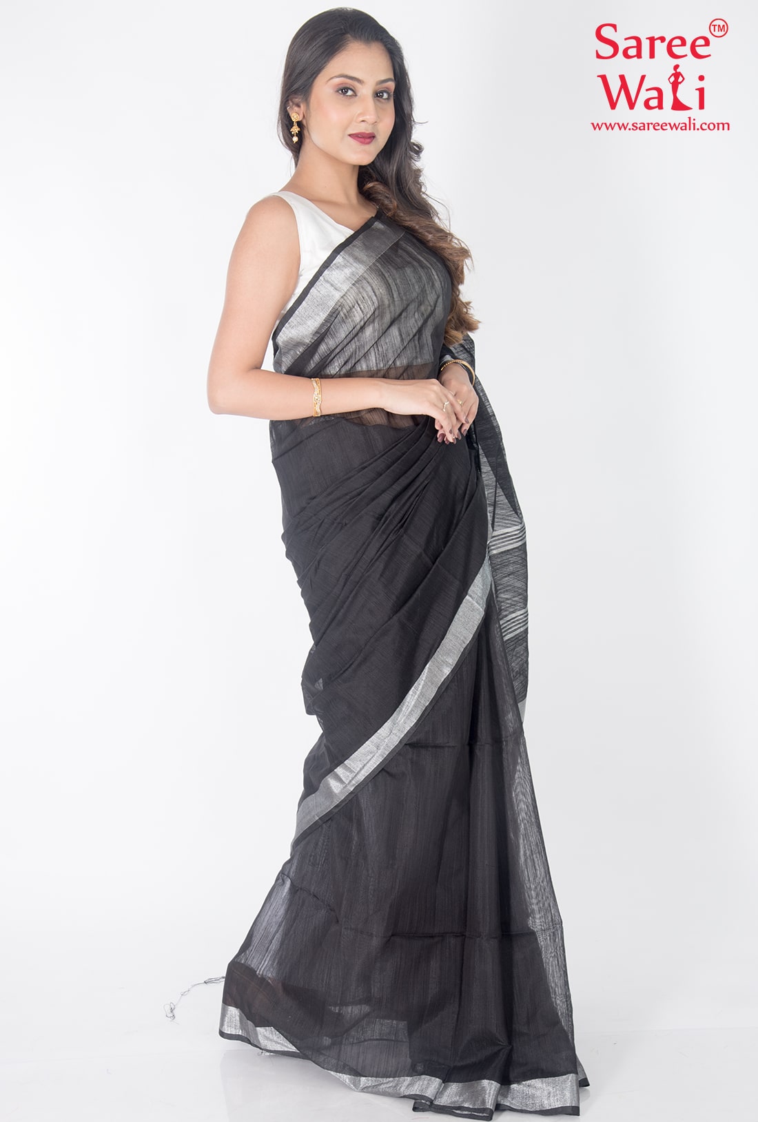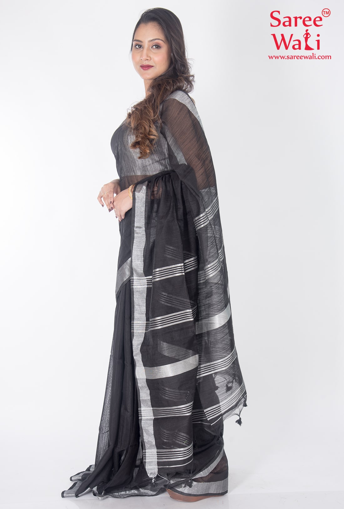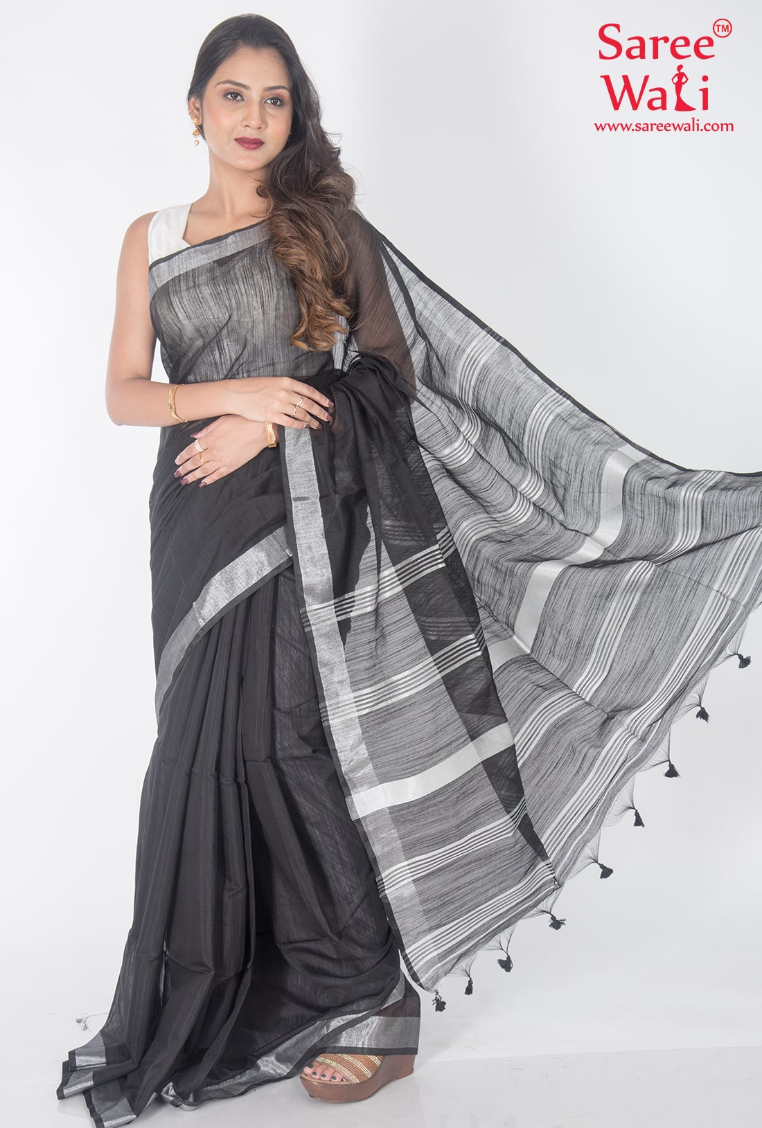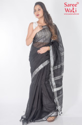 Black Bold Plain Handloom Saree SWHL0027