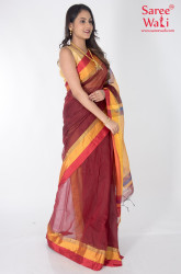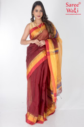 The border and pallu are made with zari.