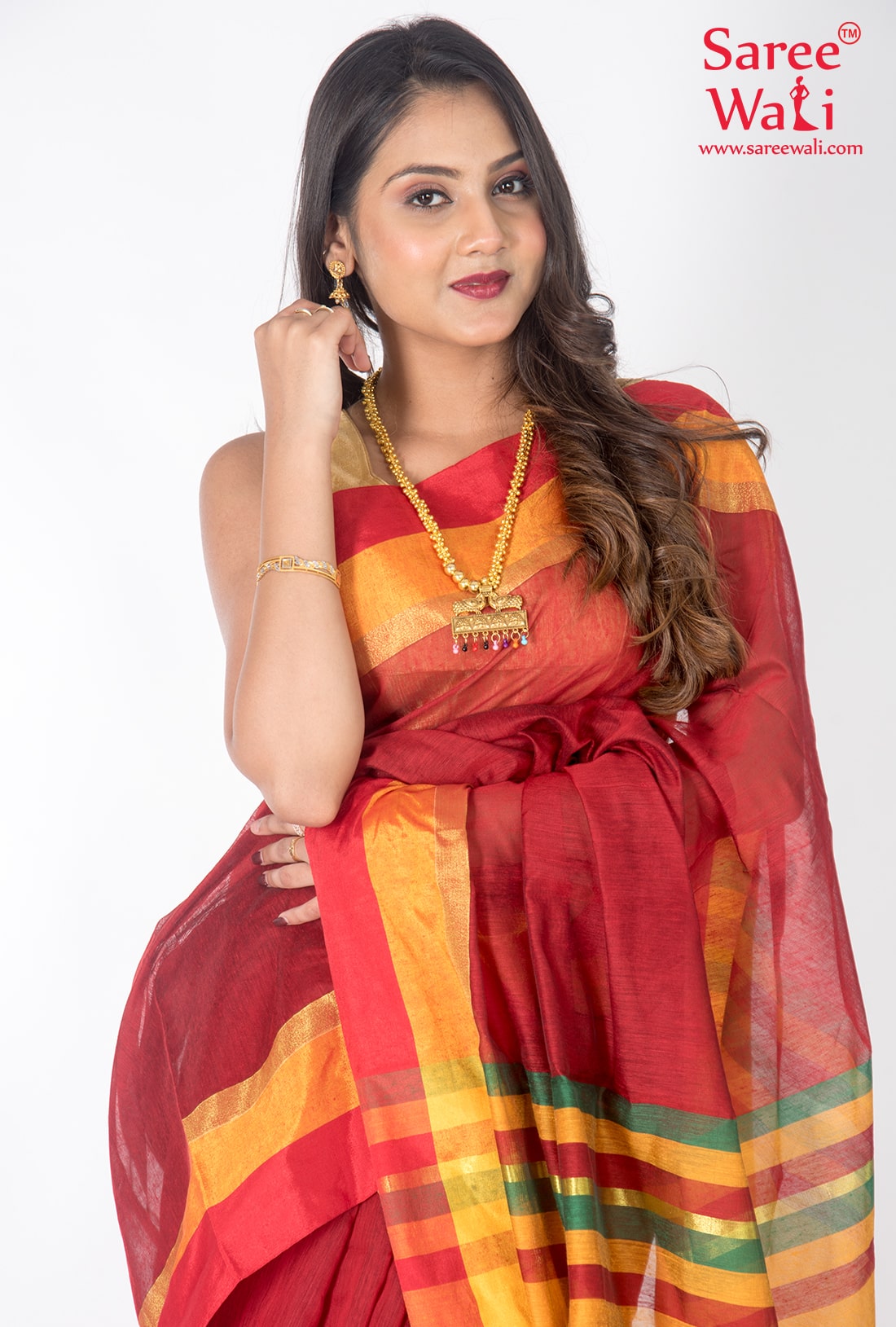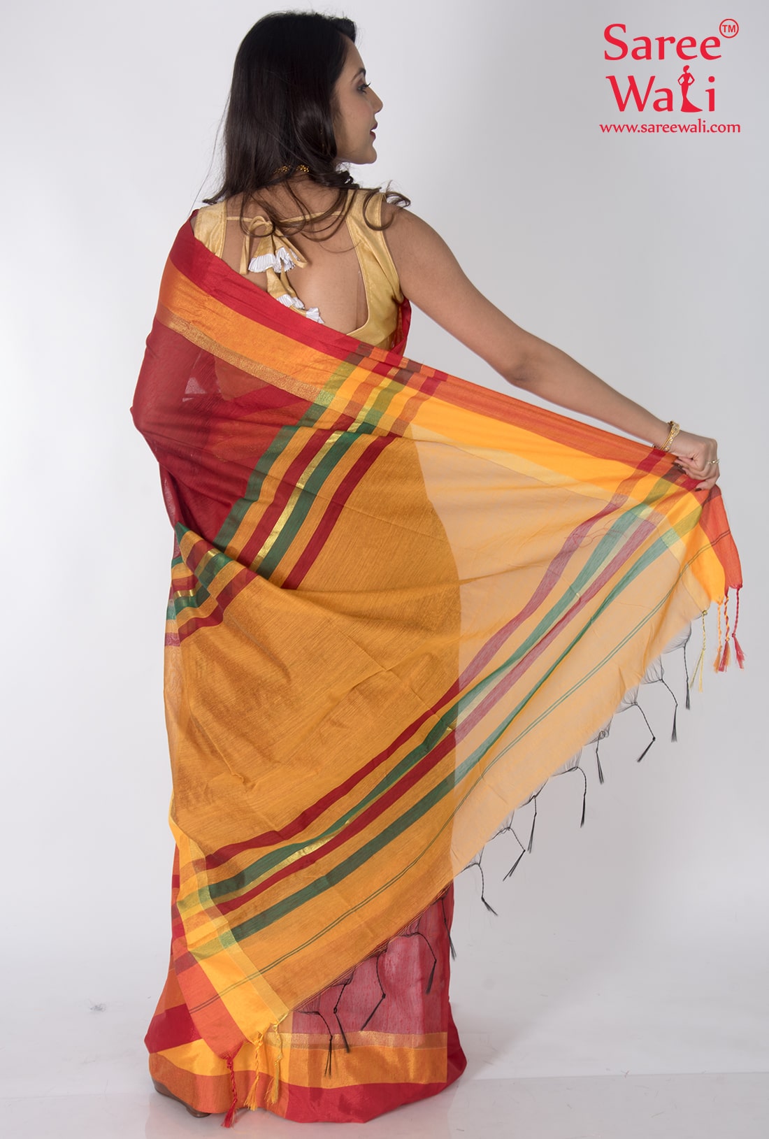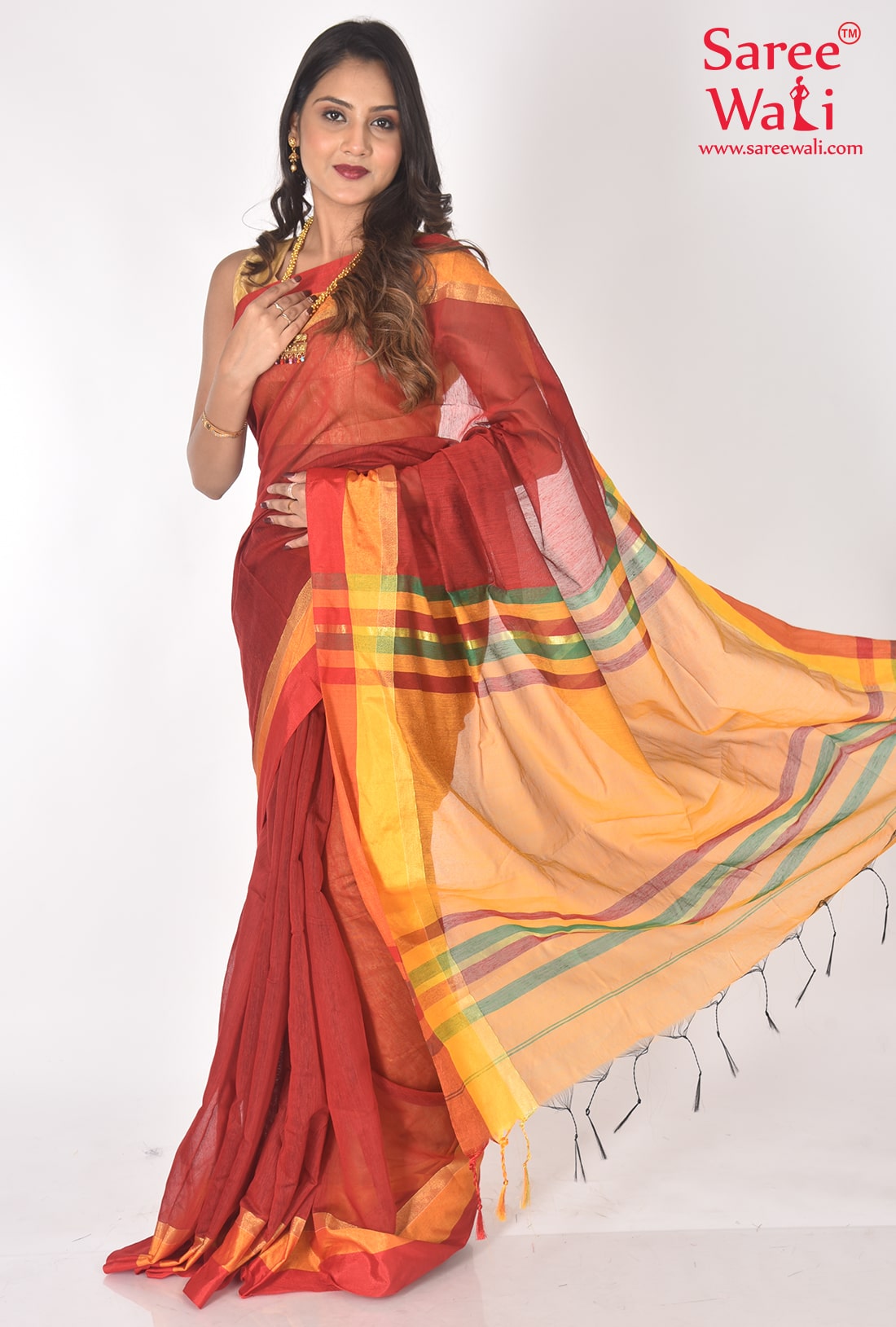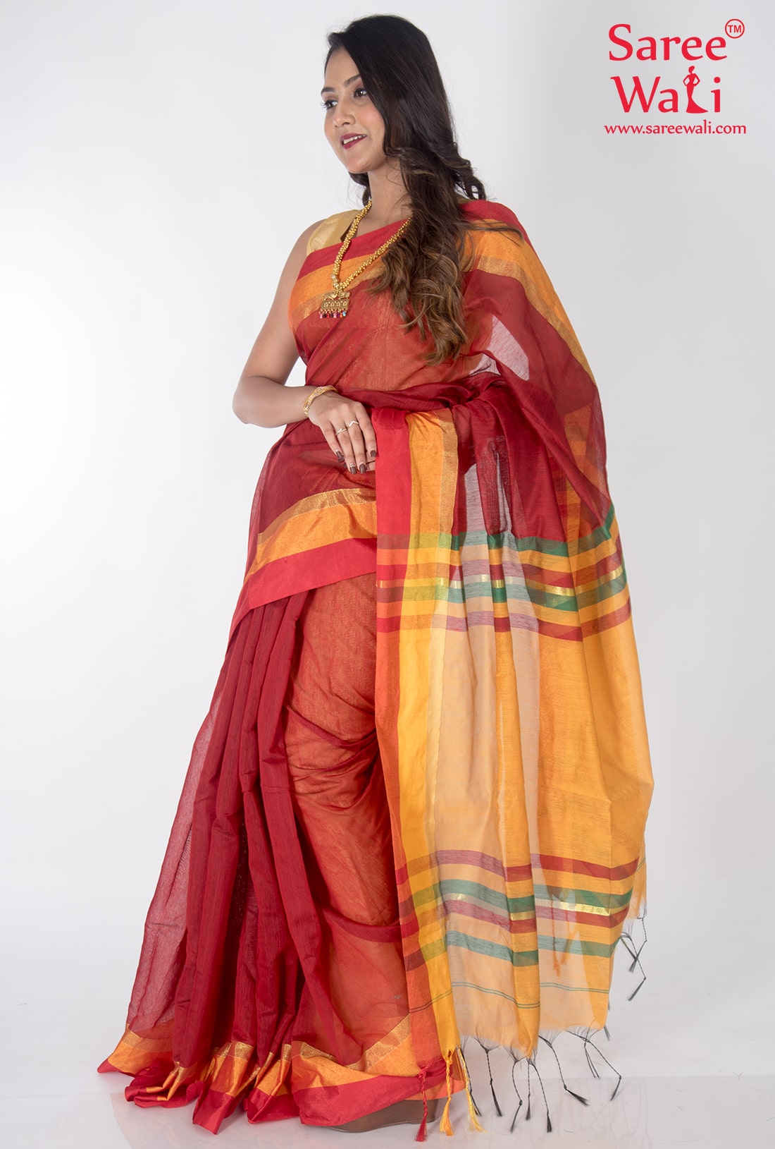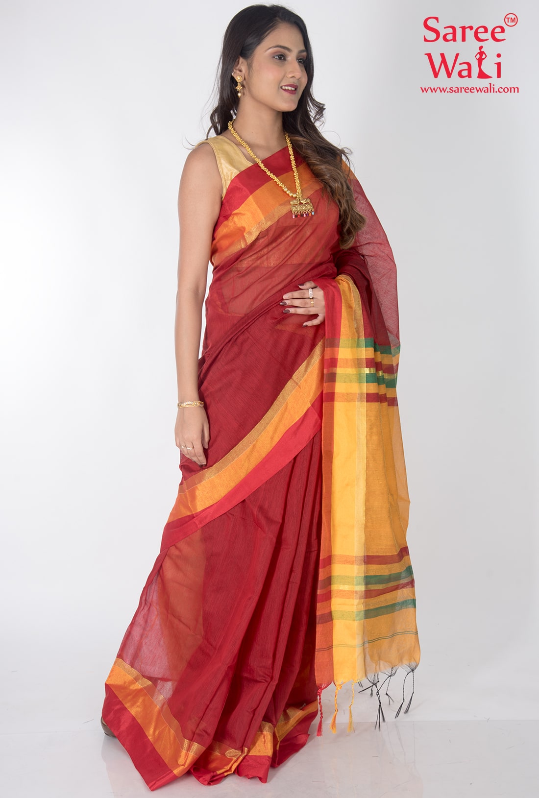 The saree measures 5.5 meters in length and 1.2 meters in width.