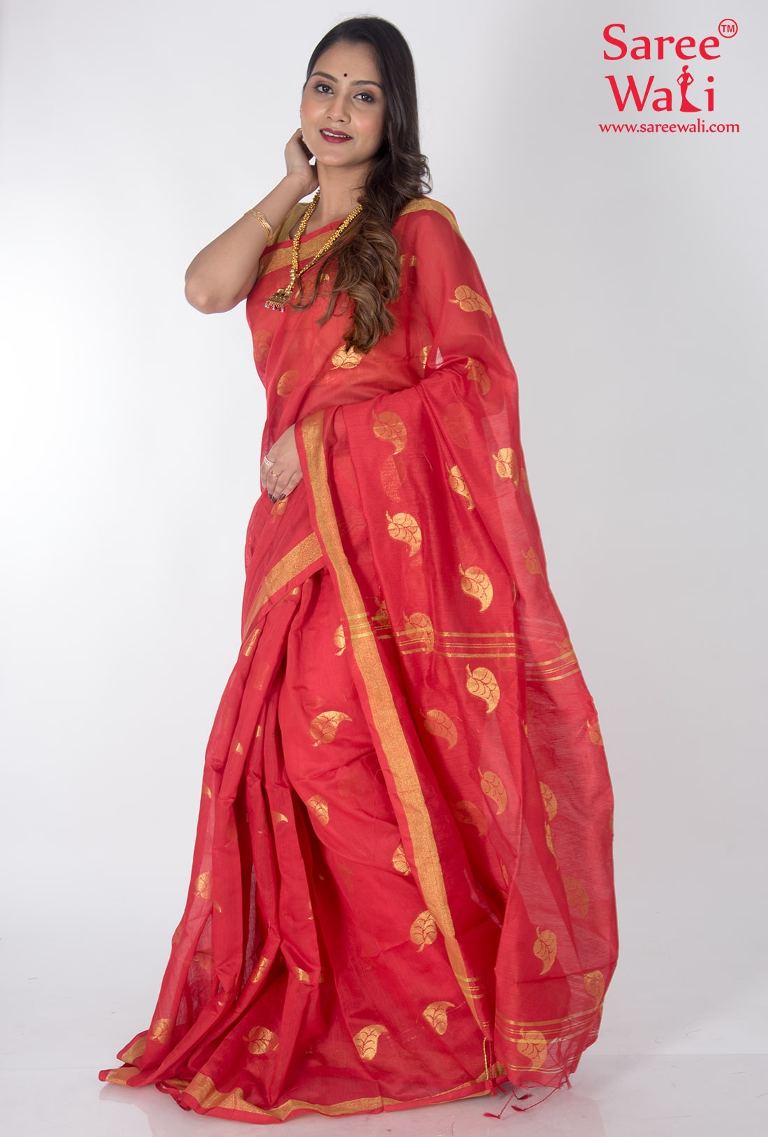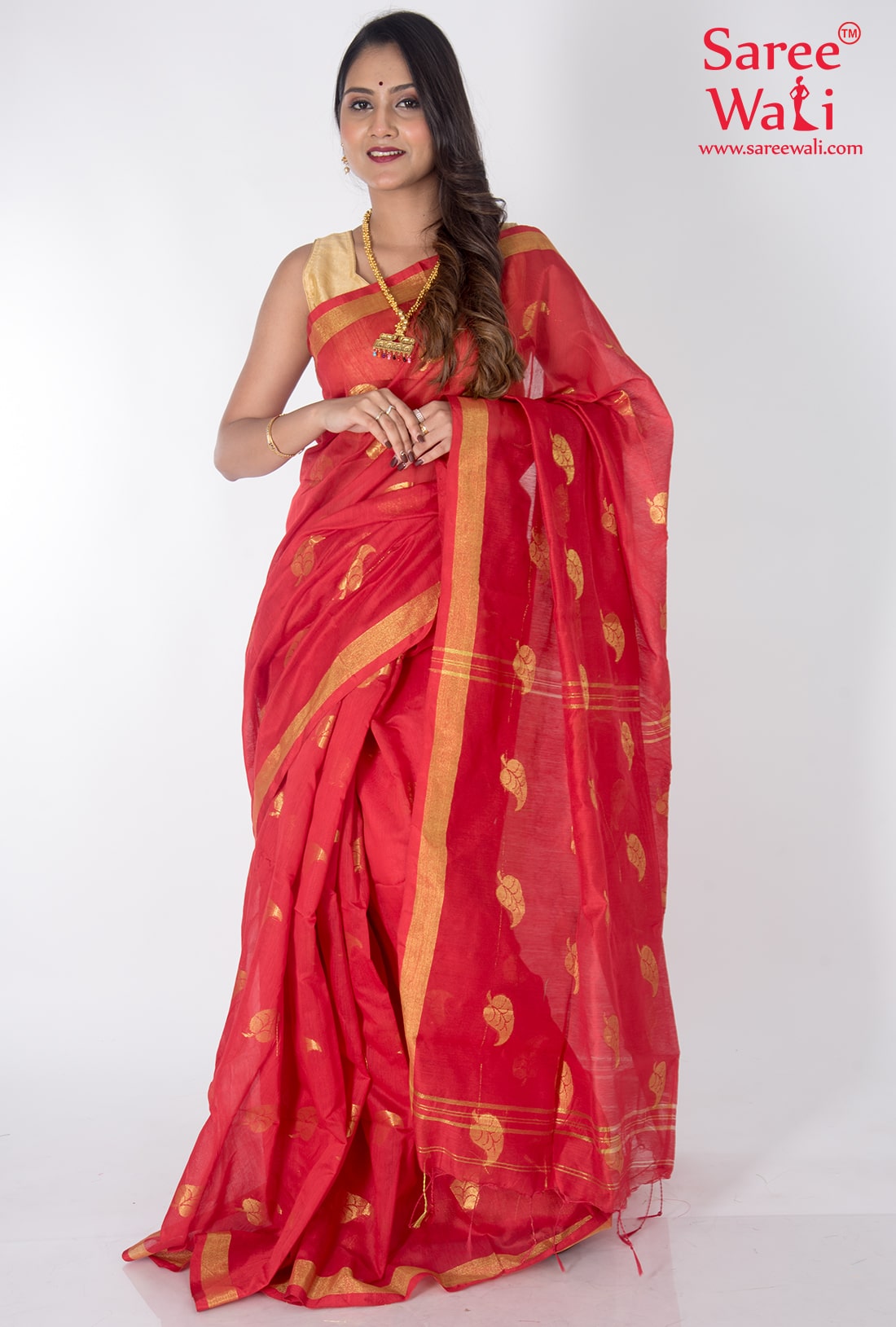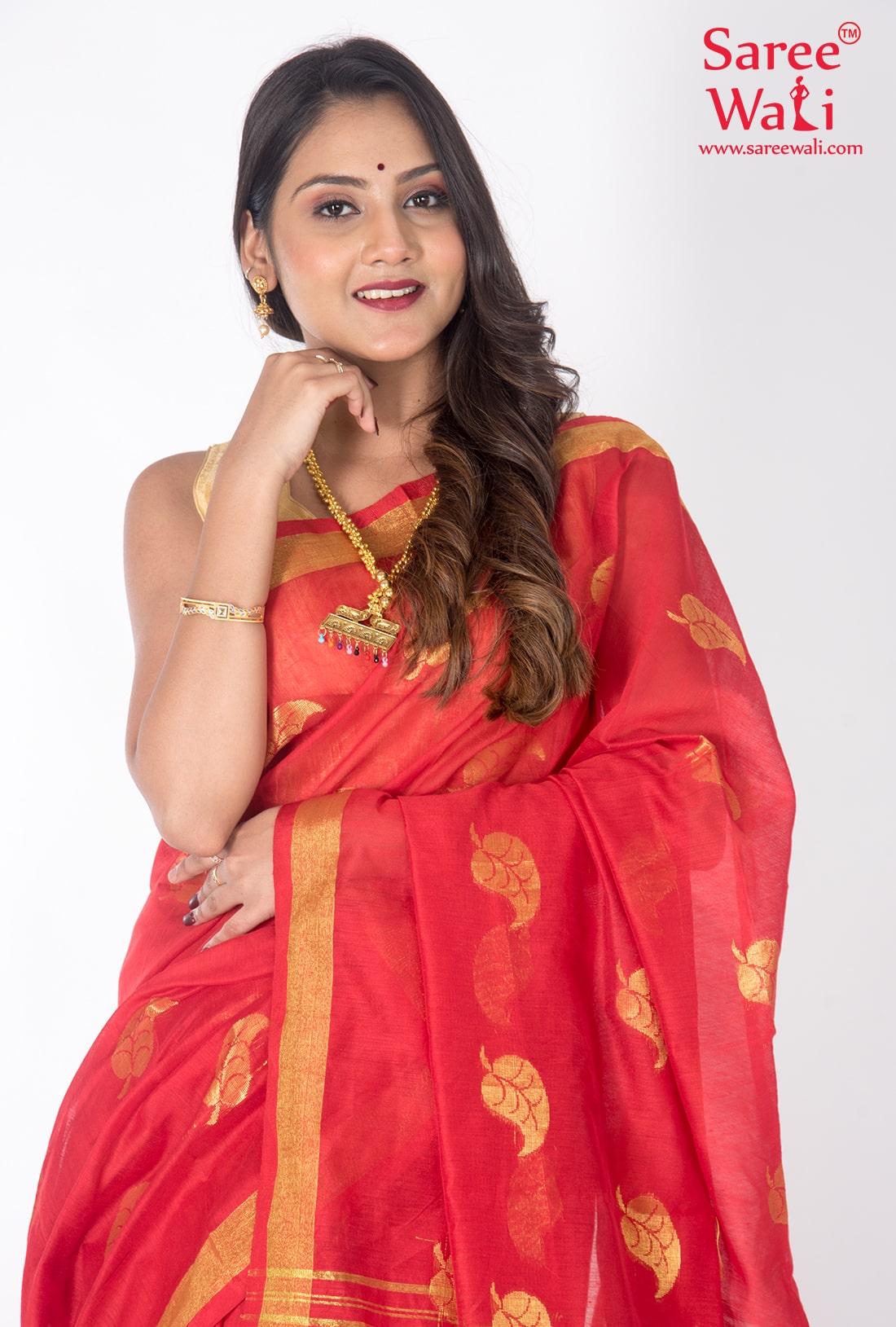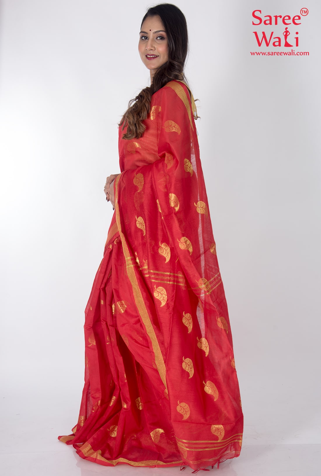 Art silk and cotton fabric of finest quality are used in the making of this Leaf Design Saree.