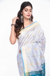 Border: Plain golden border draws from both side of the pallav through out the saree.