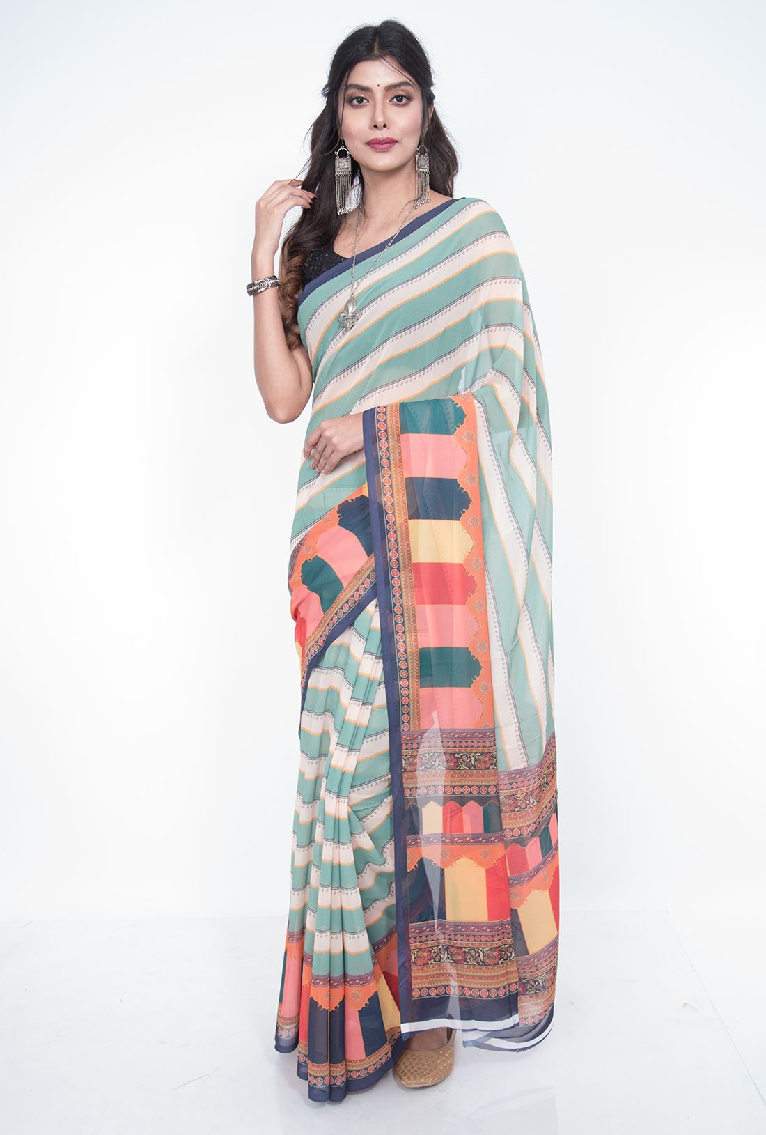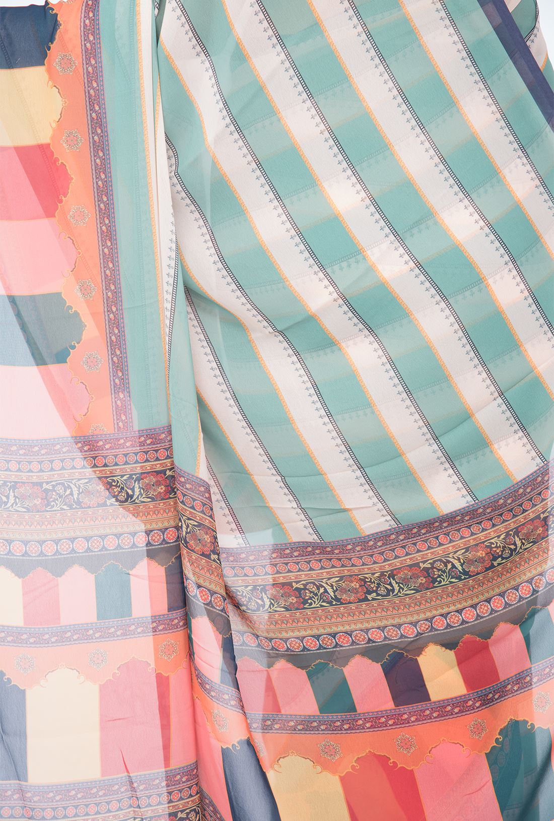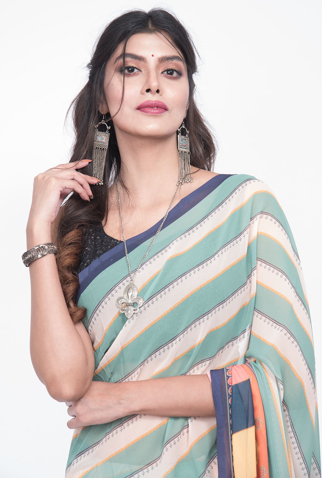 Body: Printed Stripes in mint blue and white body makes the look classy and elegant.