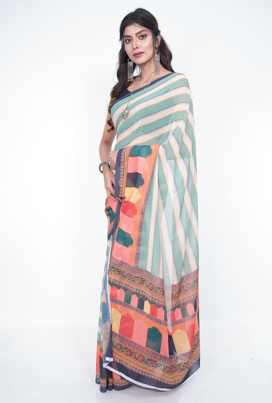 Border: It has a designer & printed single side broad width multicolor border at the bottom.
