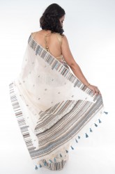 Border: Narrow width contemporary grey blue border draws from both the sides of the pallav.