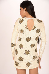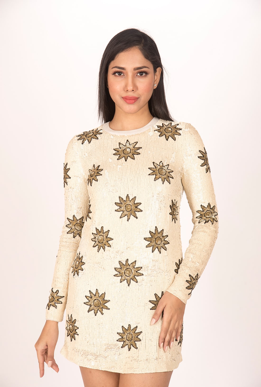 Hand knitted, Viscose Georgette Fabric and Embroidery with PVC Sequins