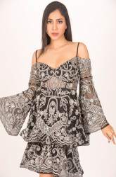 Hand knitted along with machine work, Tulle Fabric and Embroidery with PVC Sequins, Glass and Plastic beads