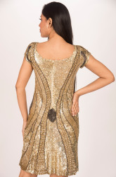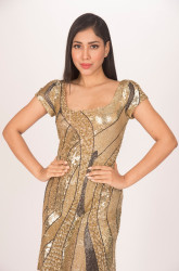 Hand knitted, Viscose Georgette Fabric and Embroidery with Glass beads and PVC Sequins