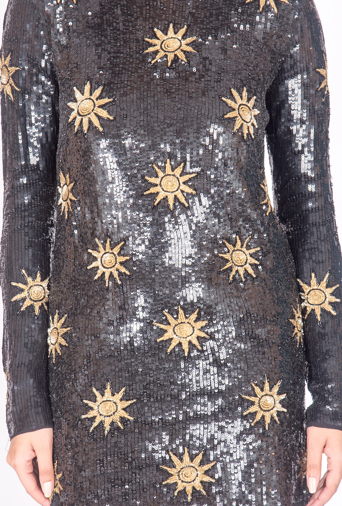 Hand knitted, Viscose Georgette Fabric and Embroidery with Glass beads and PVC Sequins.