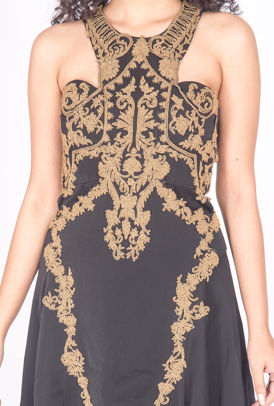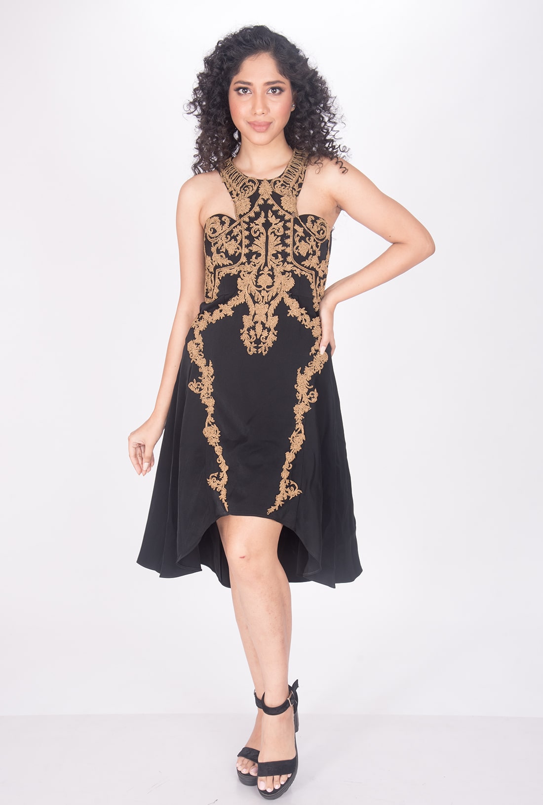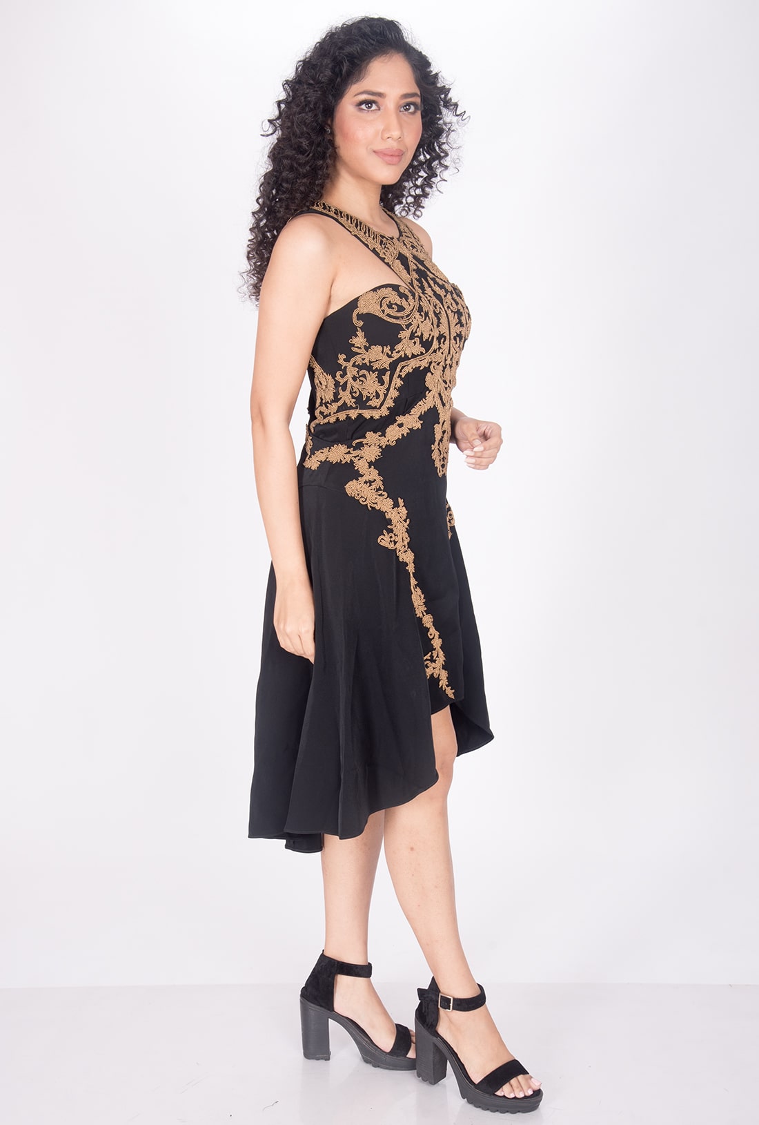 Hand knitted, Crepe Fabric and Embroidery with Glass Beads