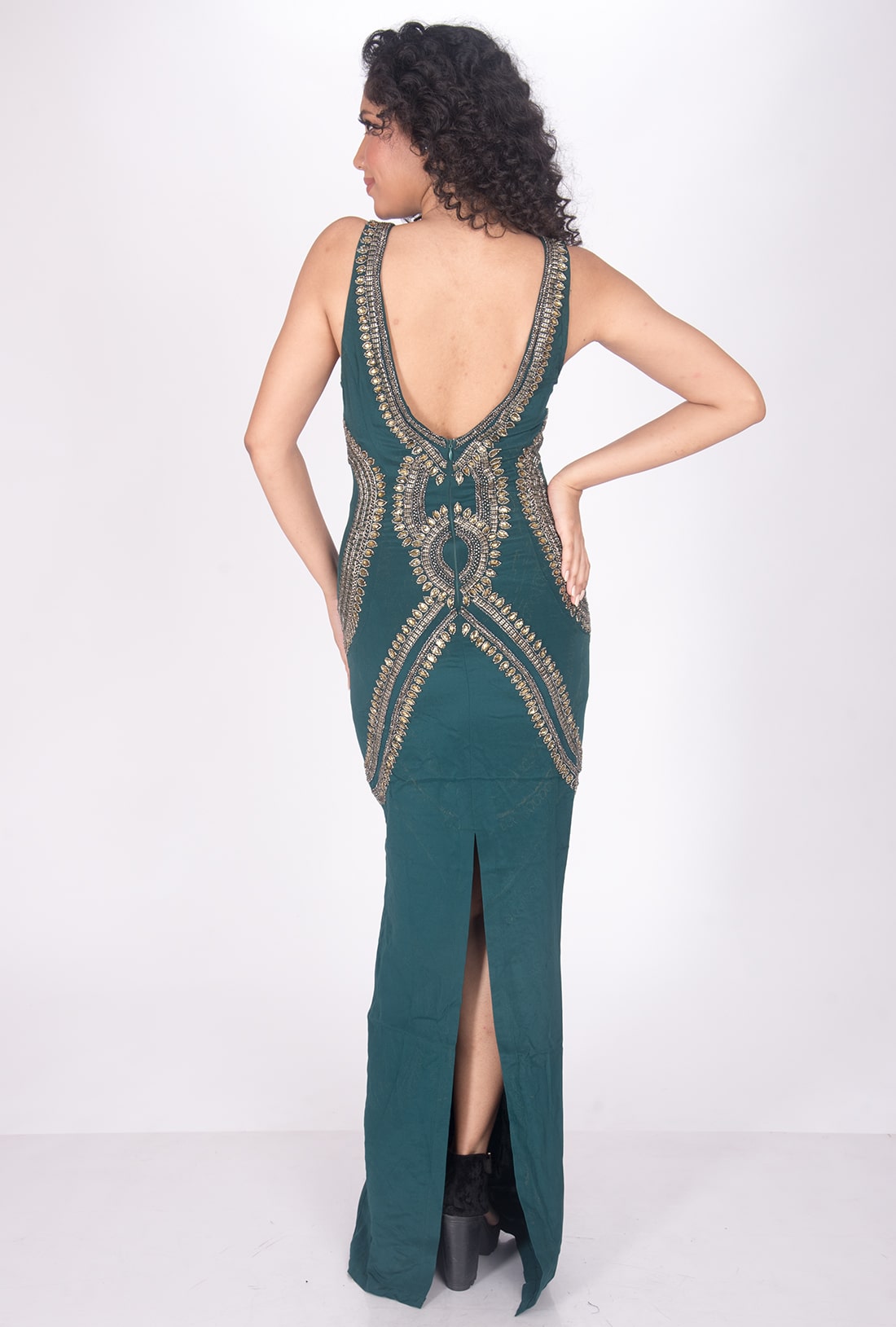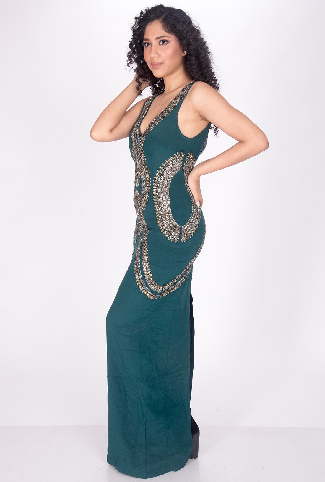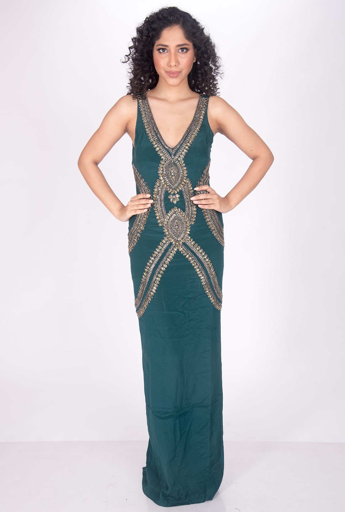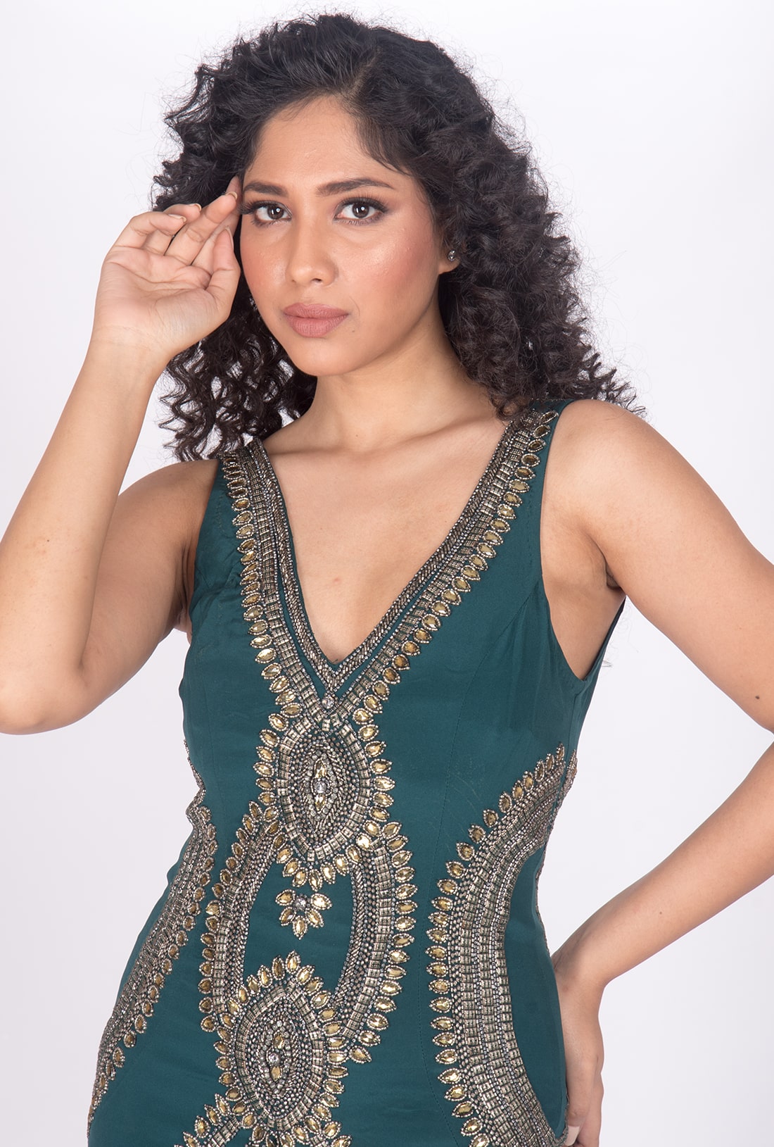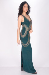 Hand knitted, Crepe Fabric and Embroidery with Plastic beads and Metal Beads