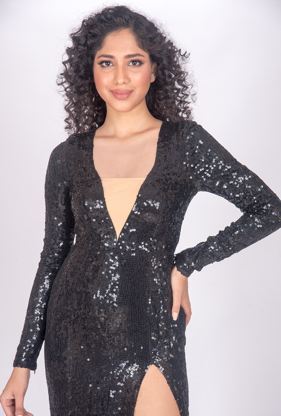 Hand knitted, Viscose Georgette Fabric and Embroidery with PVC Sequins