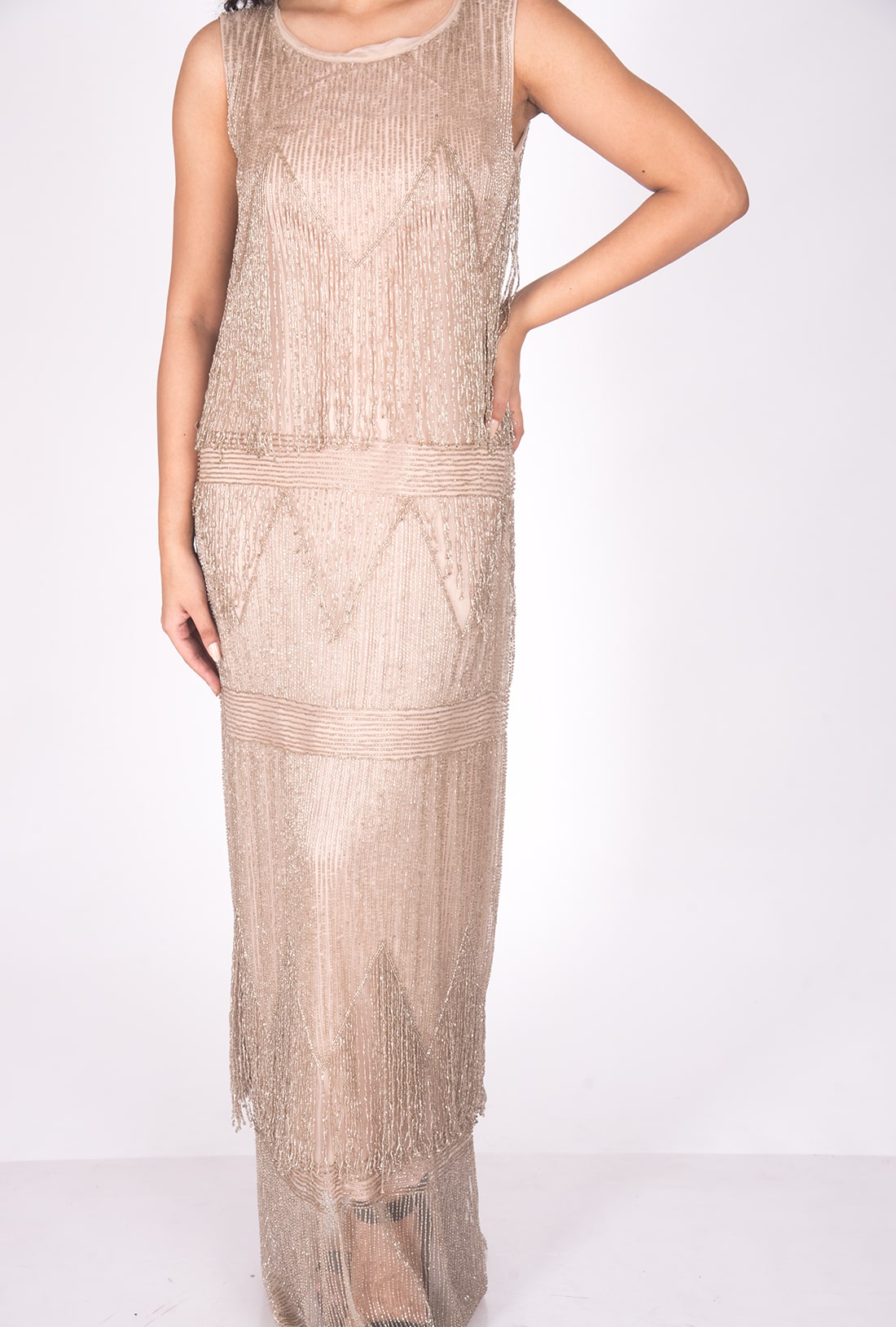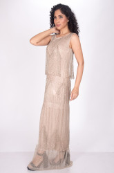 Hand knitted, Tulle Fabric and Embroidery with Glass Beads