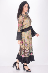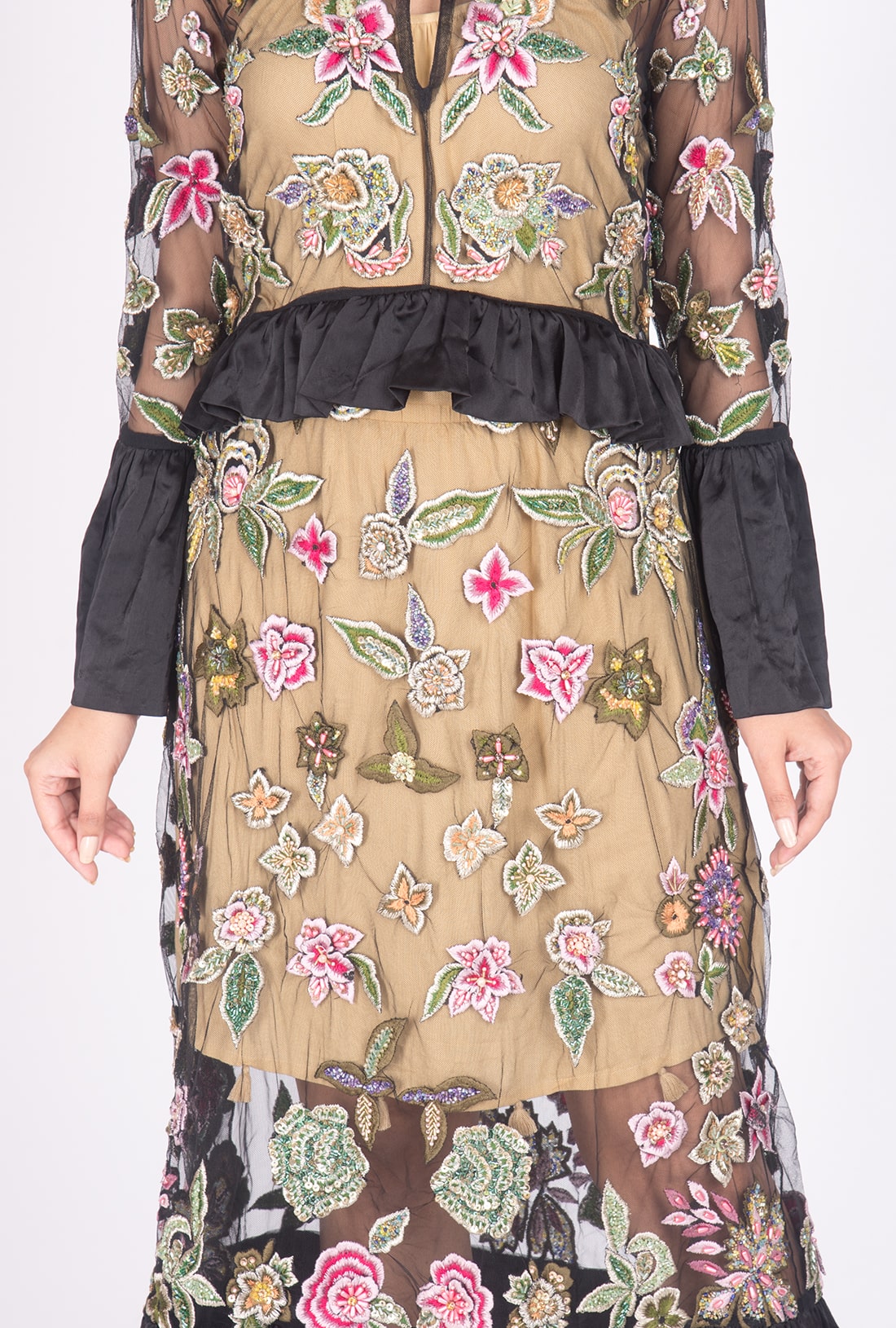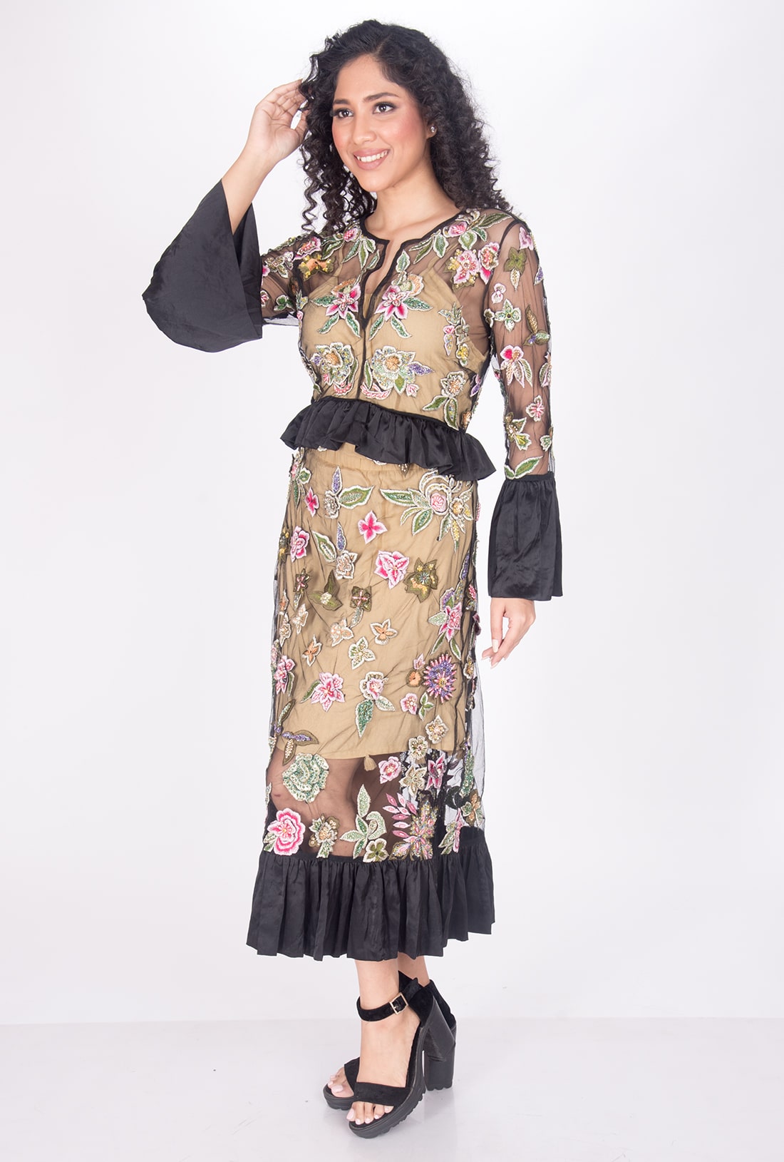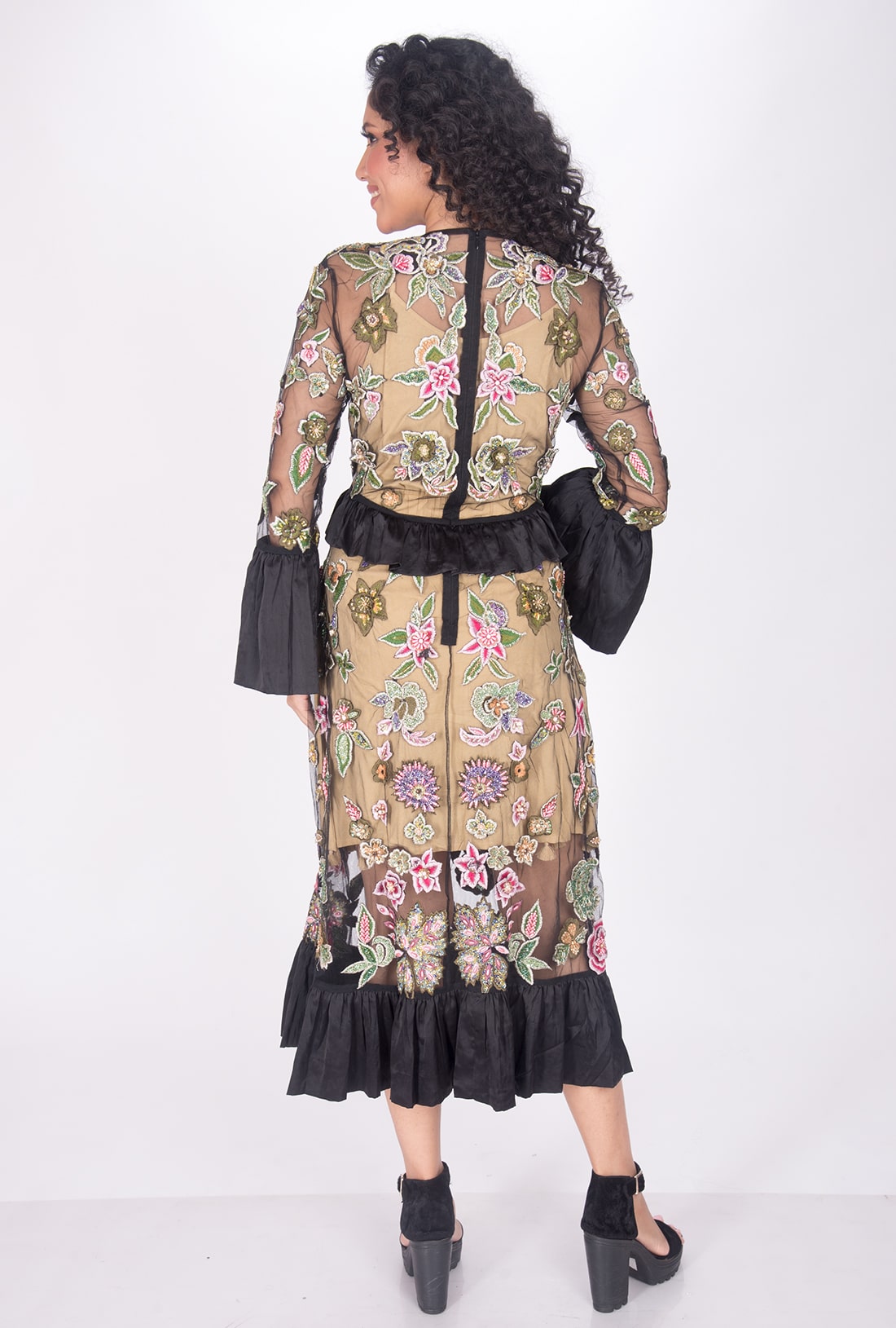 Hand knitted along with machine work, Tulle Fabric and Embroidery with Plastic beads