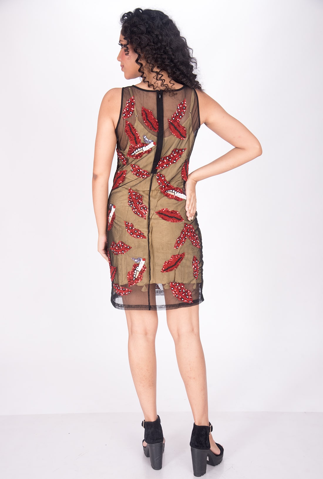 Hand knitted, Tulle Fabric and Embroidery with PVC Sequins