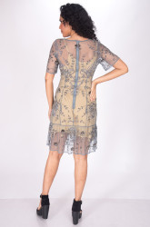 Hand knitted, Tulle Fabric and Embroidery with Glass Beads