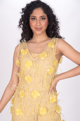 Hand knitted, Tulle Fabric and Embroidery with Glass Beads along withApplique Work