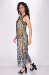Hand knitted along with machine work, Tulle Fabric and Embroidery with Plastic beads