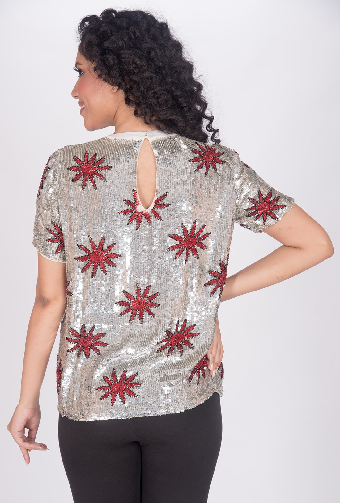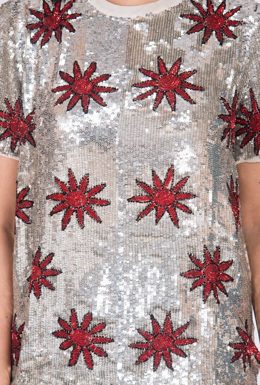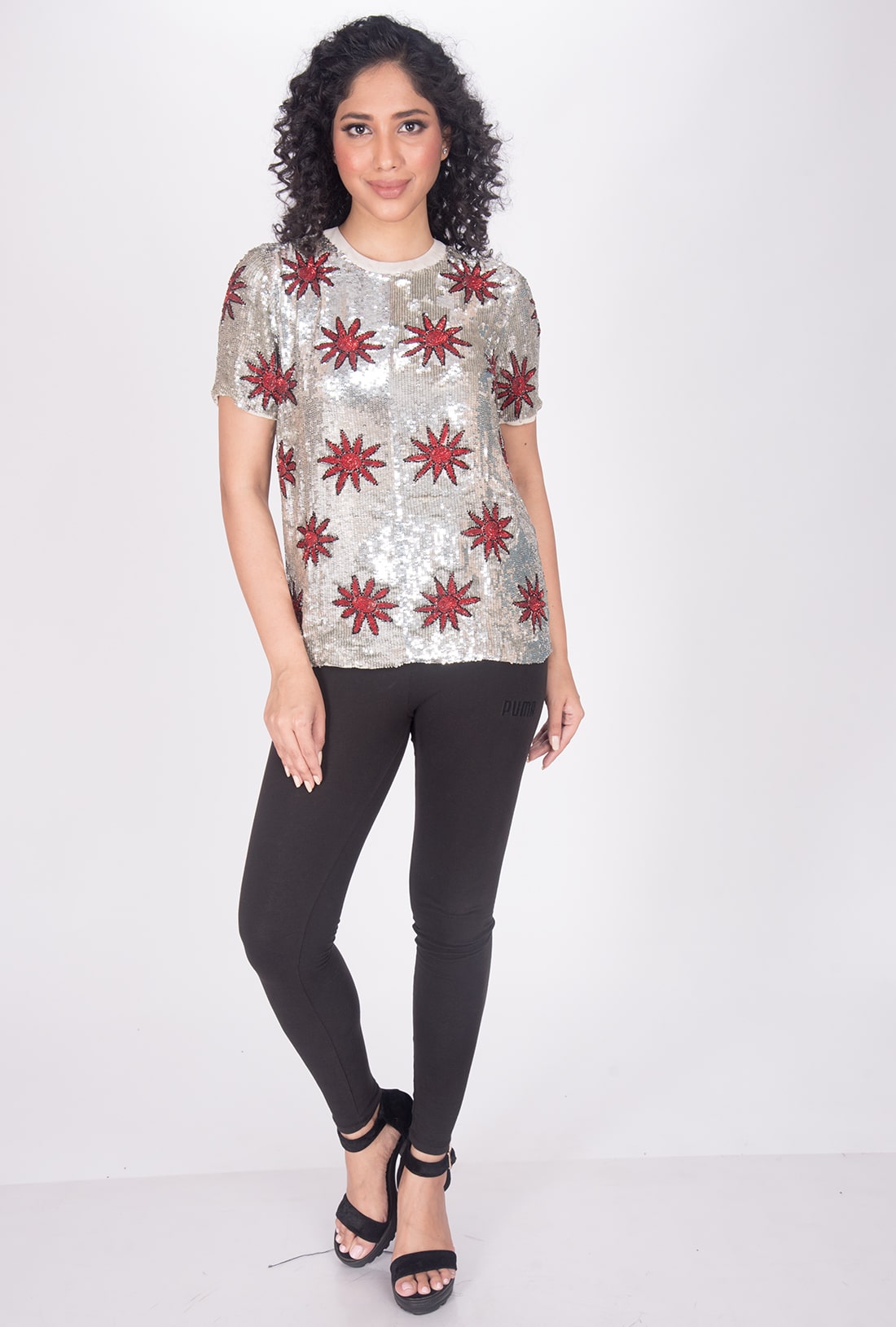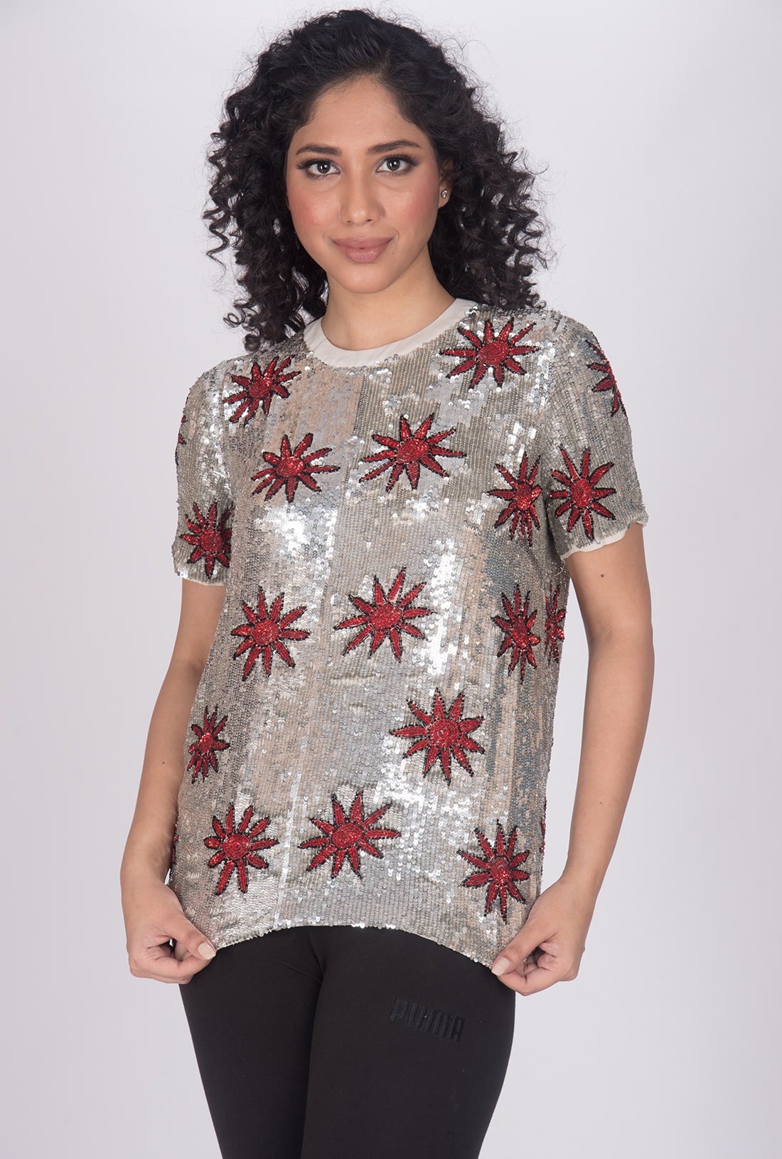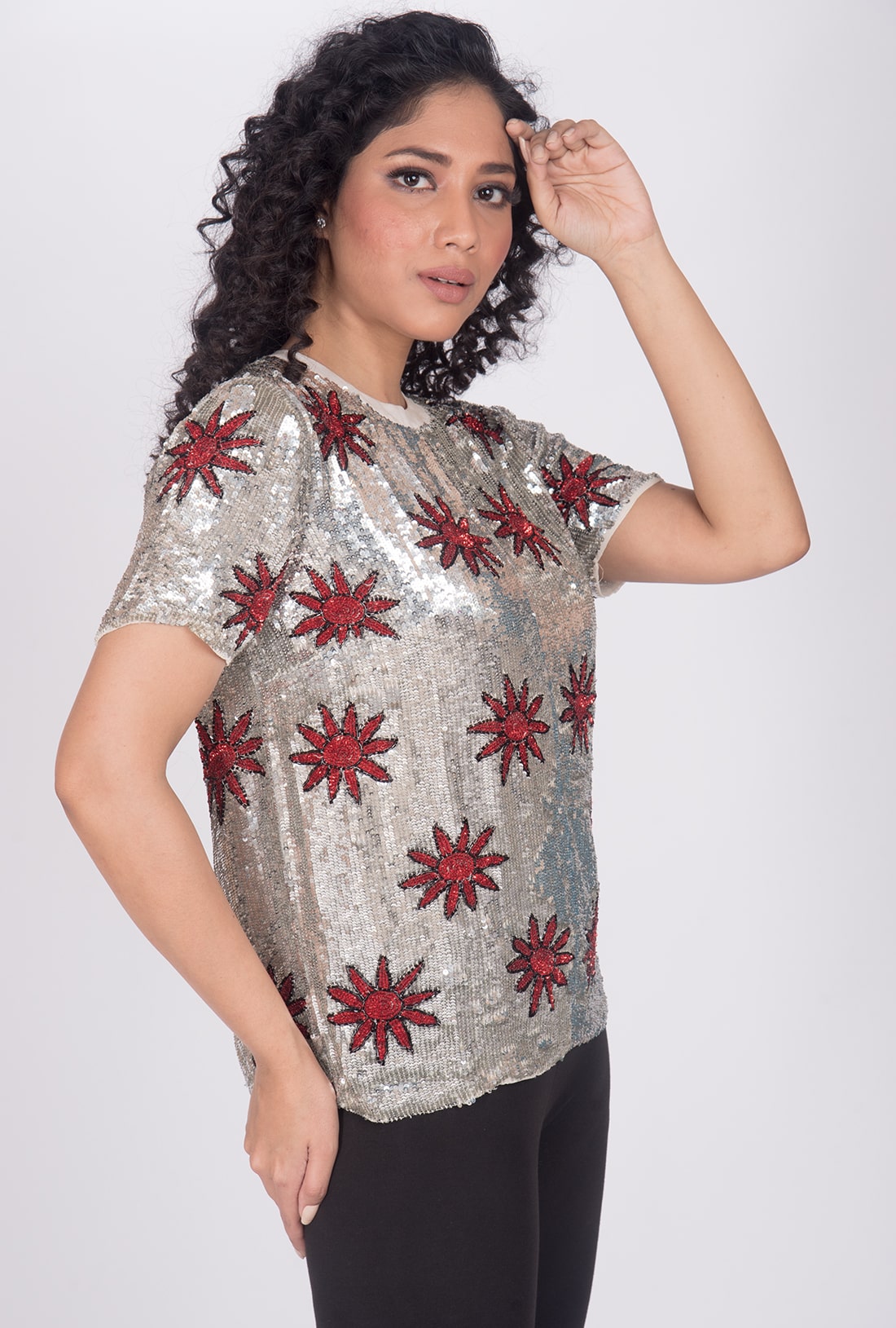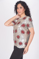 Hand knitted, Viscose Georgette Fabric and Embroidery with PVC Sequins