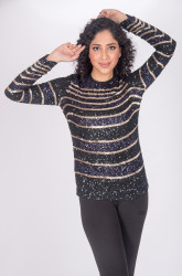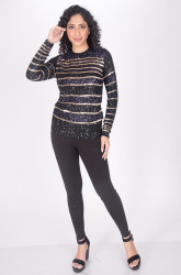 Hand knitted, Viscose Georgette Fabric and Embroidery with PVC Sequins