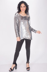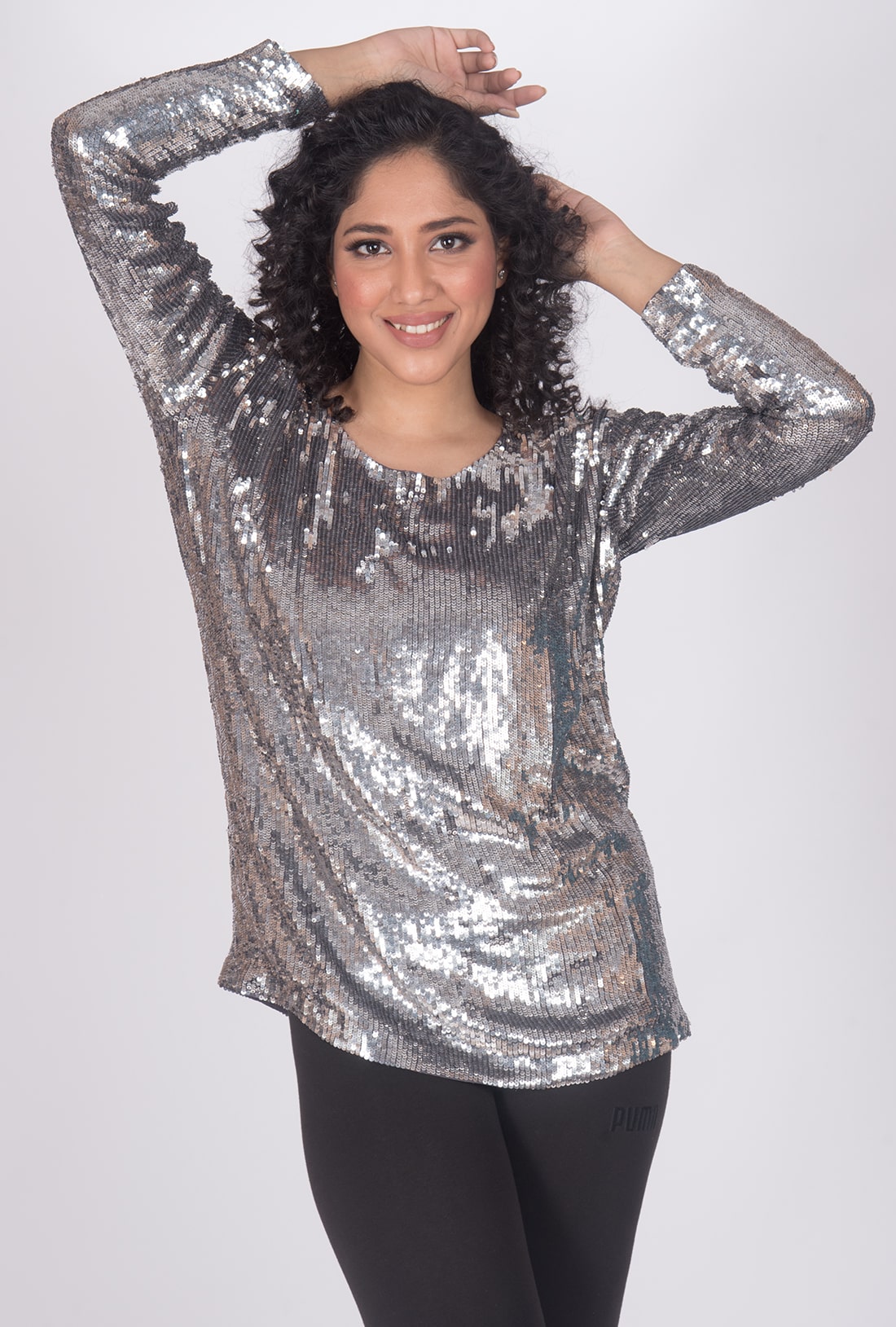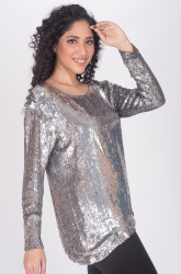 Hand knitted, Viscose Georgette Fabric and Embroidery with PVC Sequins