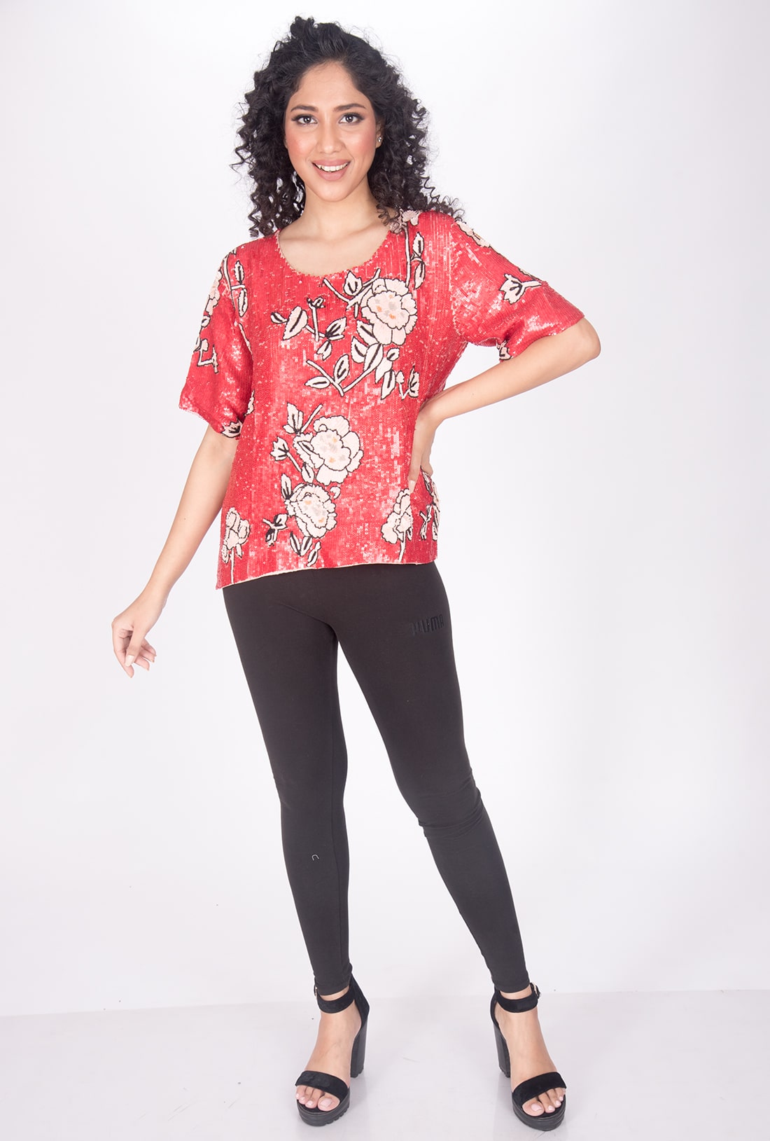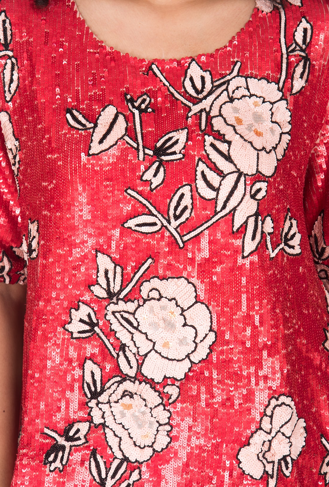 Hand knitted, Viscose Georgette Fabric and Embroidery with PVC Sequins