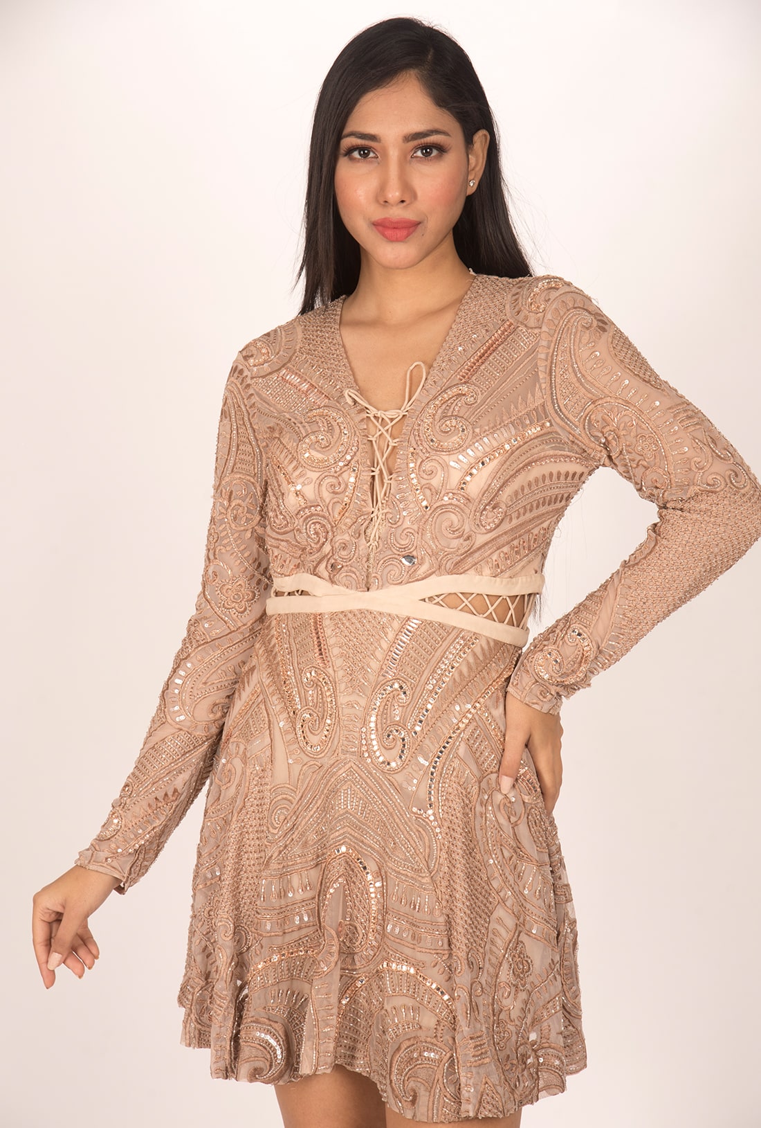 Hand knitted along with machine work, Tulle Fabric and Embroidery with Plastic and Stone beads