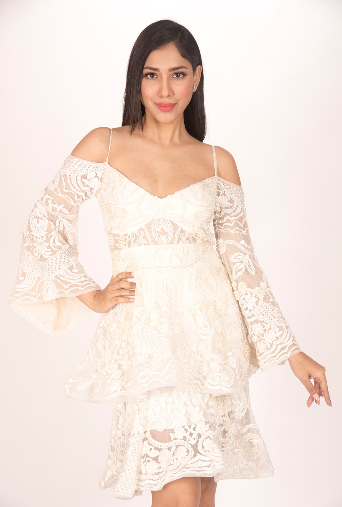 Hand knitted, Tulle Fabric and Embroidery with Glass and Plastic Beads