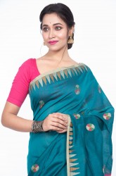 Border: Tiny temple borders in copper and silver creates the ultimate look of the saree.