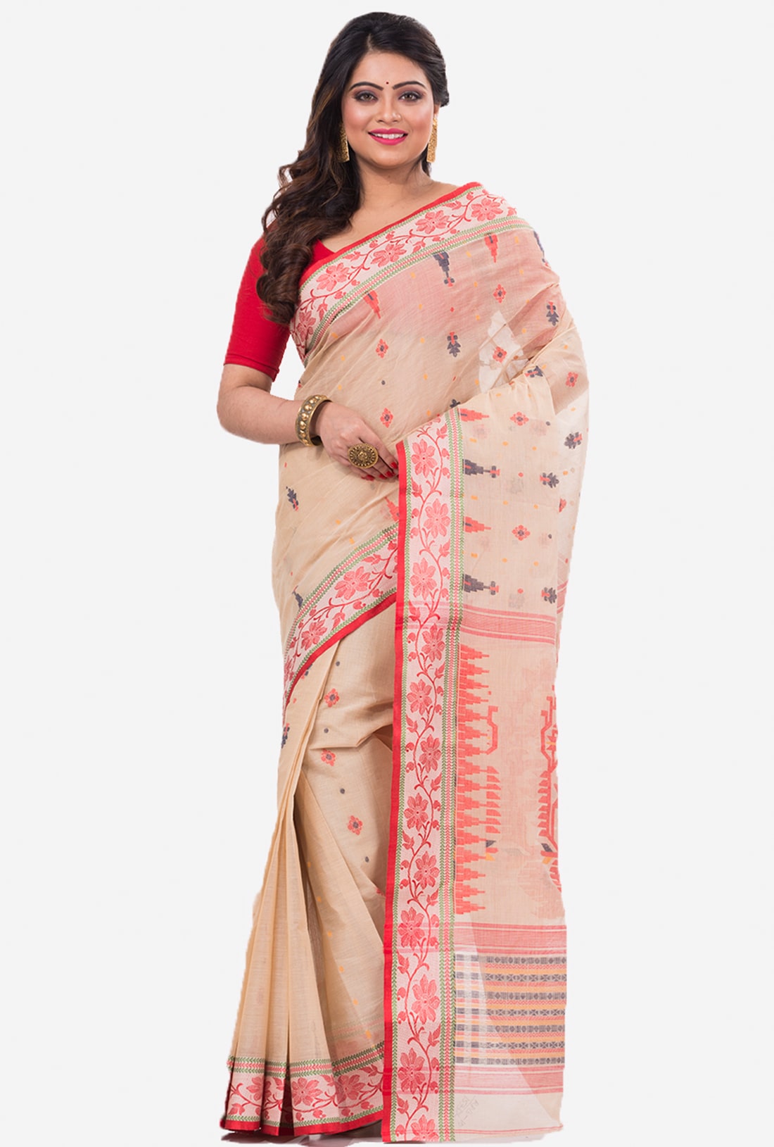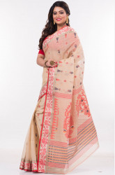 Red White Bengal Tant Cotton Saree HTC0027