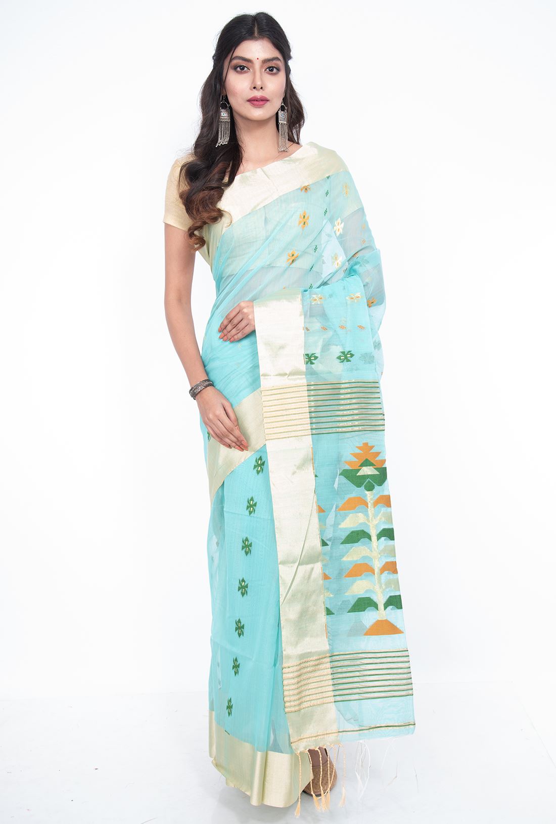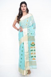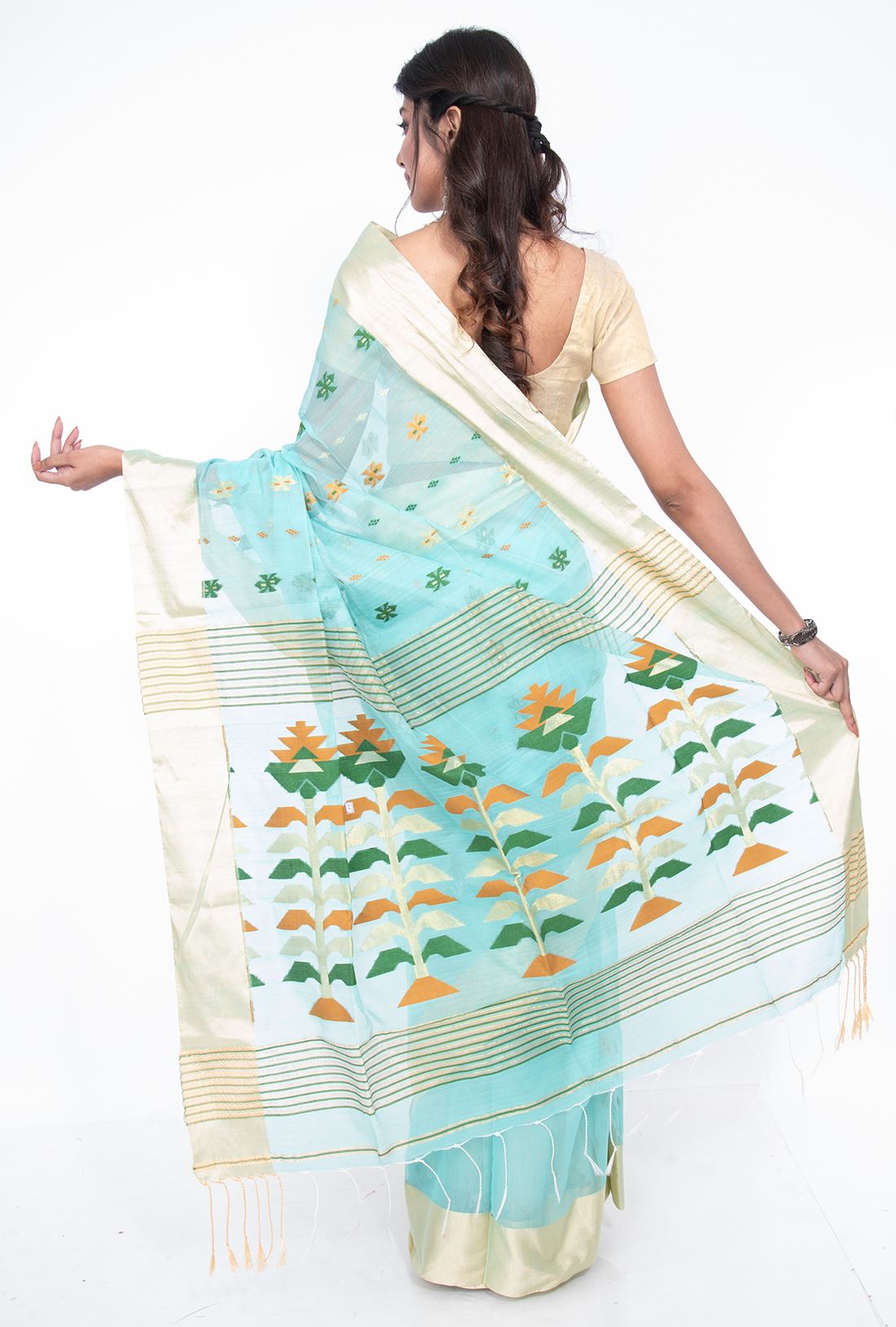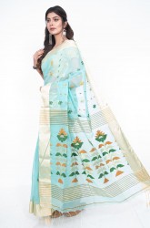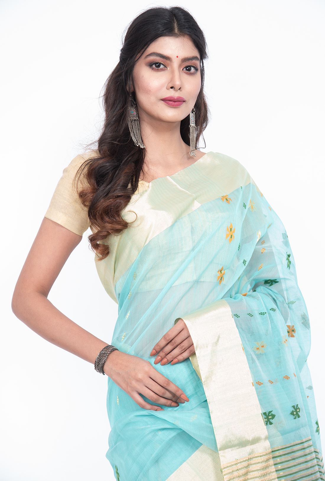 Border: Plain Silver Zari border creates the ultimate look of the saree.