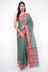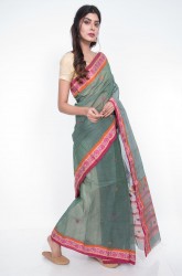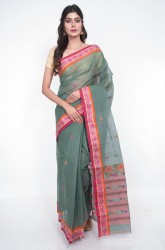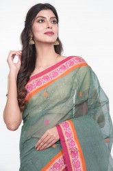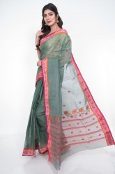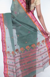 Pallav: Floral Jamdani work in multicolor running all over the teal green pallav to give the saree an exquisite look.